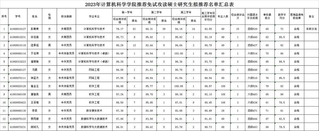 关于beat365在线唯一官网2023年拟推荐免试攻读研究生名单公示