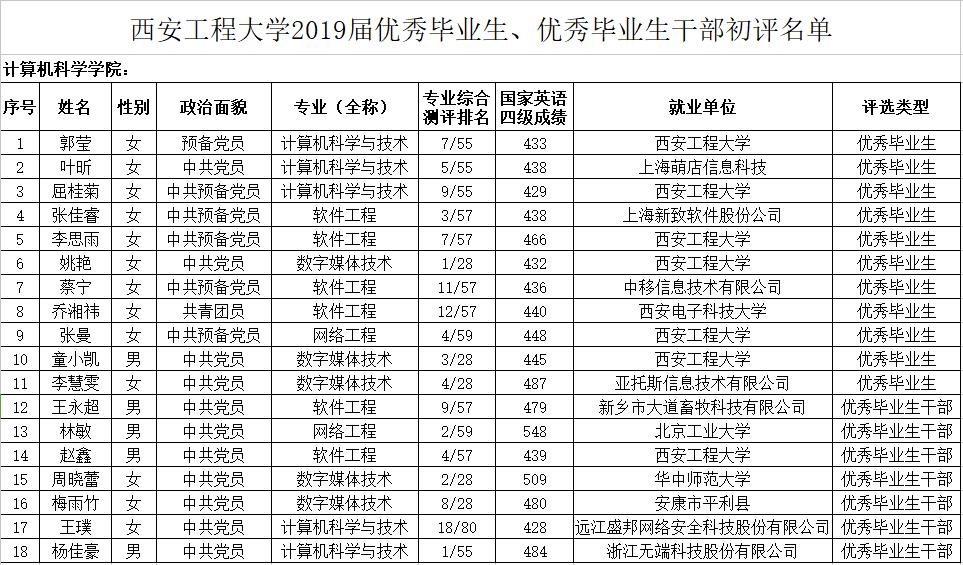 经学生本人申请,班级推荐,学院学生工作办公室审核认定,beat365在线唯一官网推荐2019届优秀毕业生、优秀毕业生干部候选人共18人,其中,优秀毕业生11人,优秀毕业生干部7人。现对评选结果予以公示(附详细名单)。