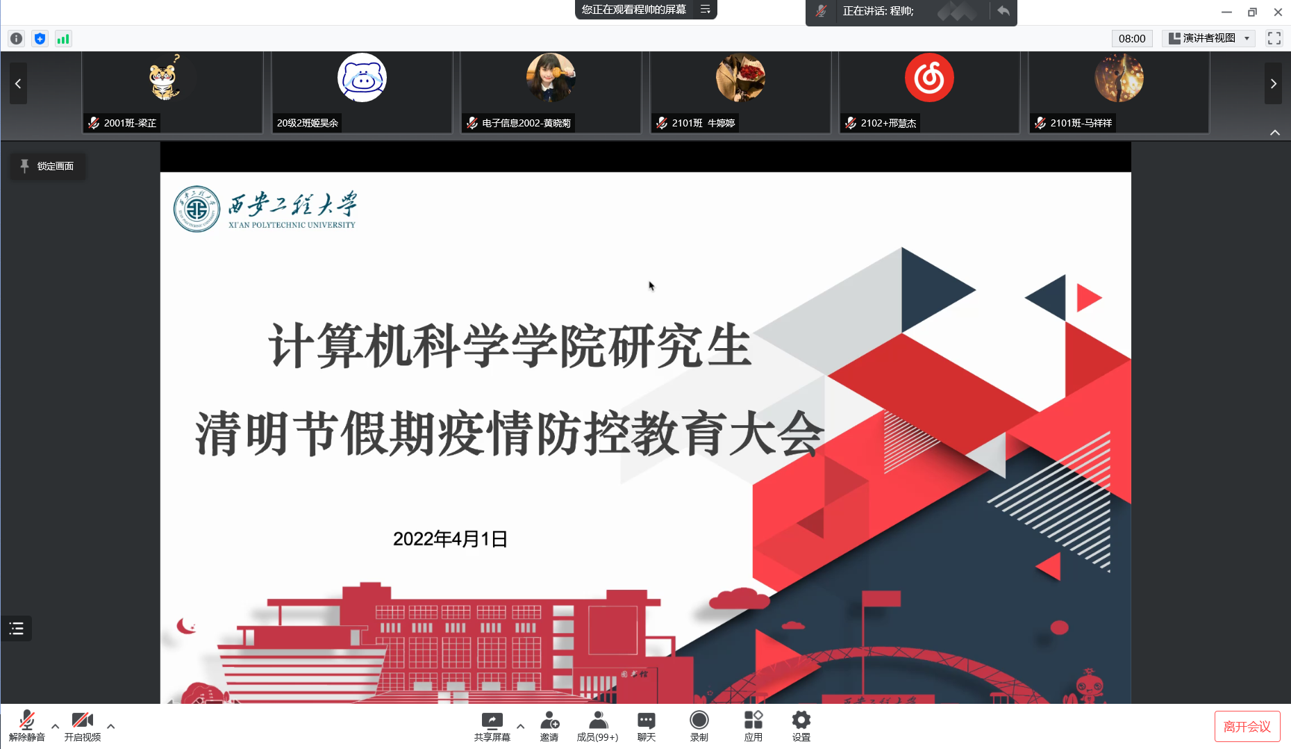 beat365在线唯一官网召开研究生清明节假期疫情防控教育大会