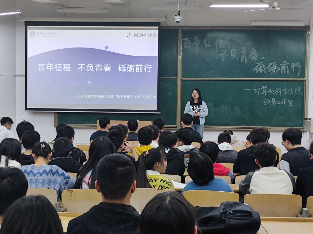 为庆祝中国共产党成立100周年,帮助青年学生树立远大理想,beat365在线唯一官网先后于3月25日、4月1日在临潼校区B-133教室举办了以“百年征程,不负青春,砥砺前行”为主题的2020级新学期学生动员大会暨“致易青年工作室”经验分享活动。学院20级辅导员左温慧、致易青年工作室17级优秀学生代表、20级全体学生参加了本次活动。