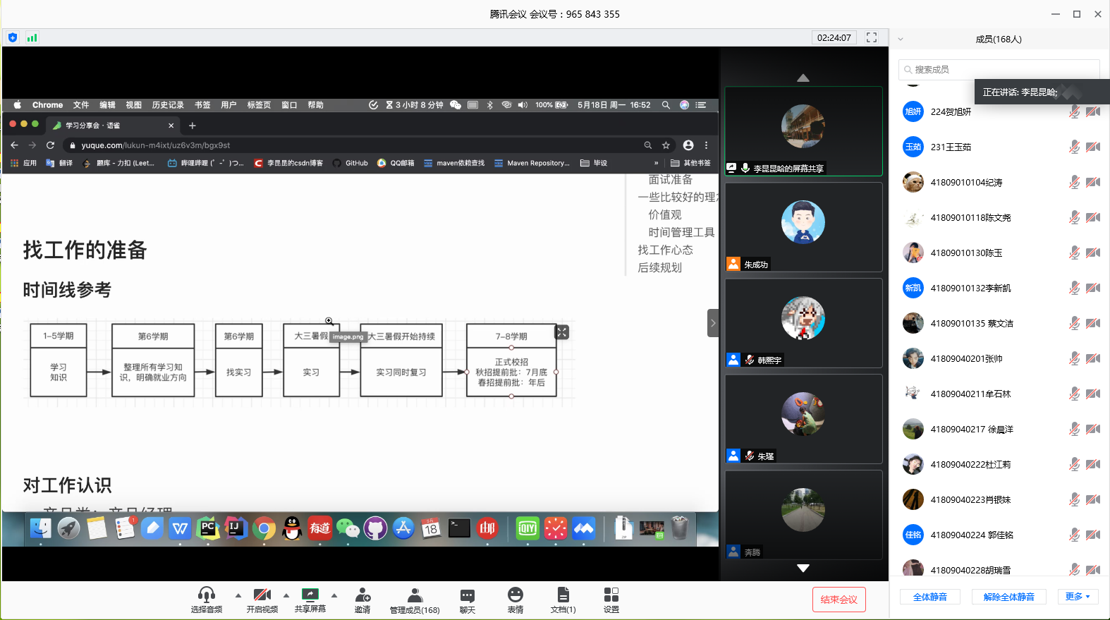 16级软件工程专业、学生第六党支部、党员卓越班李昆洪同学从自我介绍、考研or就业、就业情况(岗位、薪资、制度)、我们会面临的挑战、找工作的准备时间线(知识储备、其他能力储备、面试准备等)、较好的理念、找工作心态和后续规划等内容进行了全面而详尽的分享,他鼓励大家就业准备一定要趁早且充分,努力提升自身能力,一份完美的简历,一次充分准备的面试是一份好工作的基础,最后他希望所有人都能找到心仪的工作。