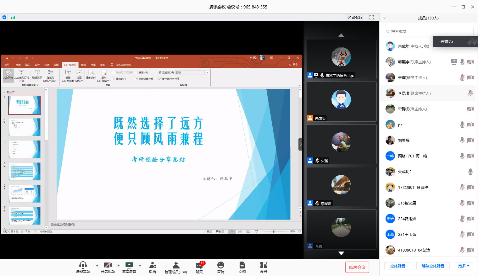会上,16级网络工程专业、学生第八党支部韩熙宇同学以“既然选择了远方,便只顾风雨兼程”为题展开分享,从自身大学四年学业规划、为什么选择考研、如何选择目标院校、考研流程、初试备考建议、研究生复试准备及其他建议等相关问题展开讲述,考研的路很辛苦,一旦目标确定,就要持之以恒坚持不懈,朝着最终的目标奋斗。