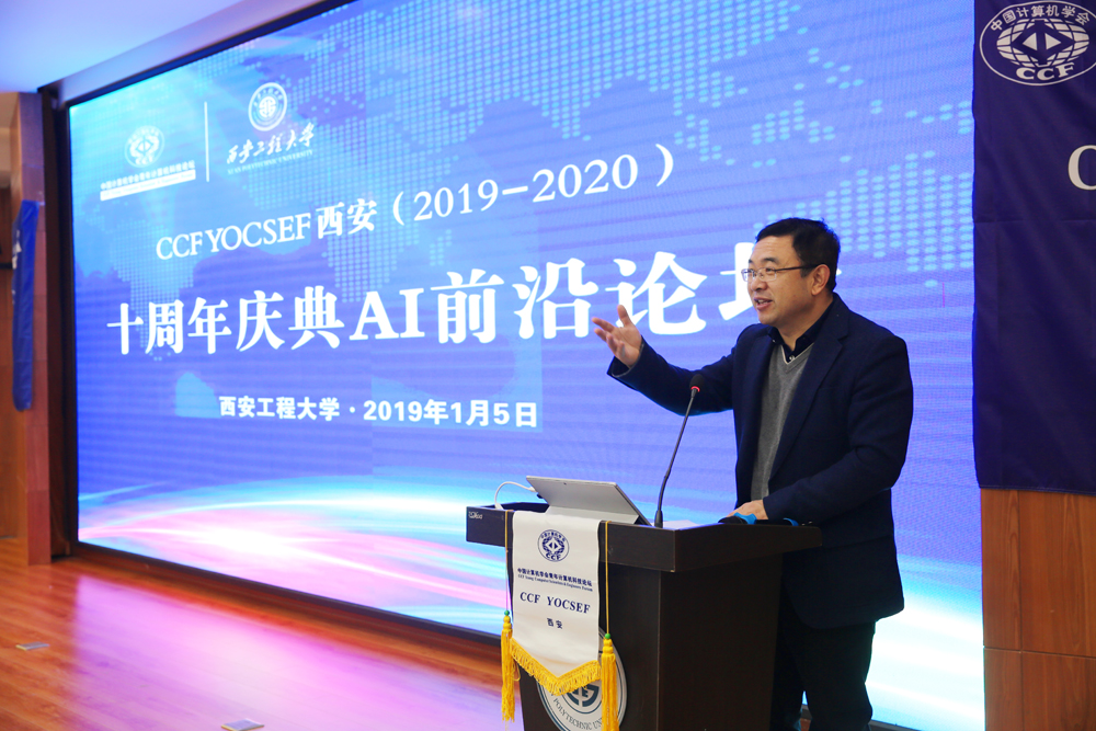 1月5日,中国计算机学会青年科技论坛西安分论坛(简称CCF YOCSEF西安)十周年庆典暨人工智能前沿论坛在我校临潼校区举行。本届论坛由CCF YOCSEF西安主办,西安工程大学beat365在线唯一官网承办。来自西部地区的青年学者、企业代表及YOCSEF其他分会代表50余名欢聚一堂,共同庆祝CCF YOCSEF西安十周年诞辰。我校校长高岭出席并致辞,论坛由西安电子科技大学教授、YOCSEF西安现任主席公茂果主持。