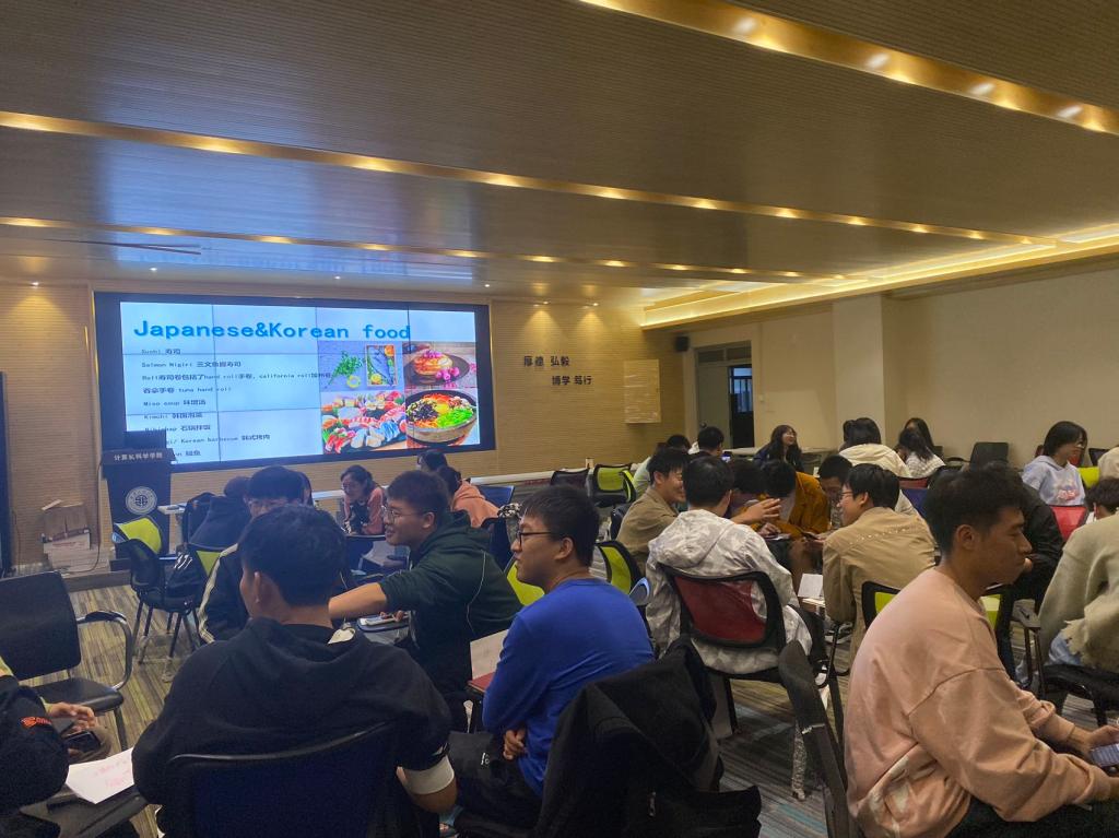 2023年11月3日,beat365在线唯一官网在学院614报告厅举办了第二期“三全育人导师团”活动之“‘英’为有你,所‘语’不同”英语角活动。本次活动由辅导员曹子凡组织,44名2023级及5名2022级本科生参加了活动。本次活动旨在营造英语应用场景,提高学生英语实际应用能力和学习兴趣。本次活动以“cuisinefrom all over the world”为主题,采用自由讨论、对话、角色扮演等形式进行。