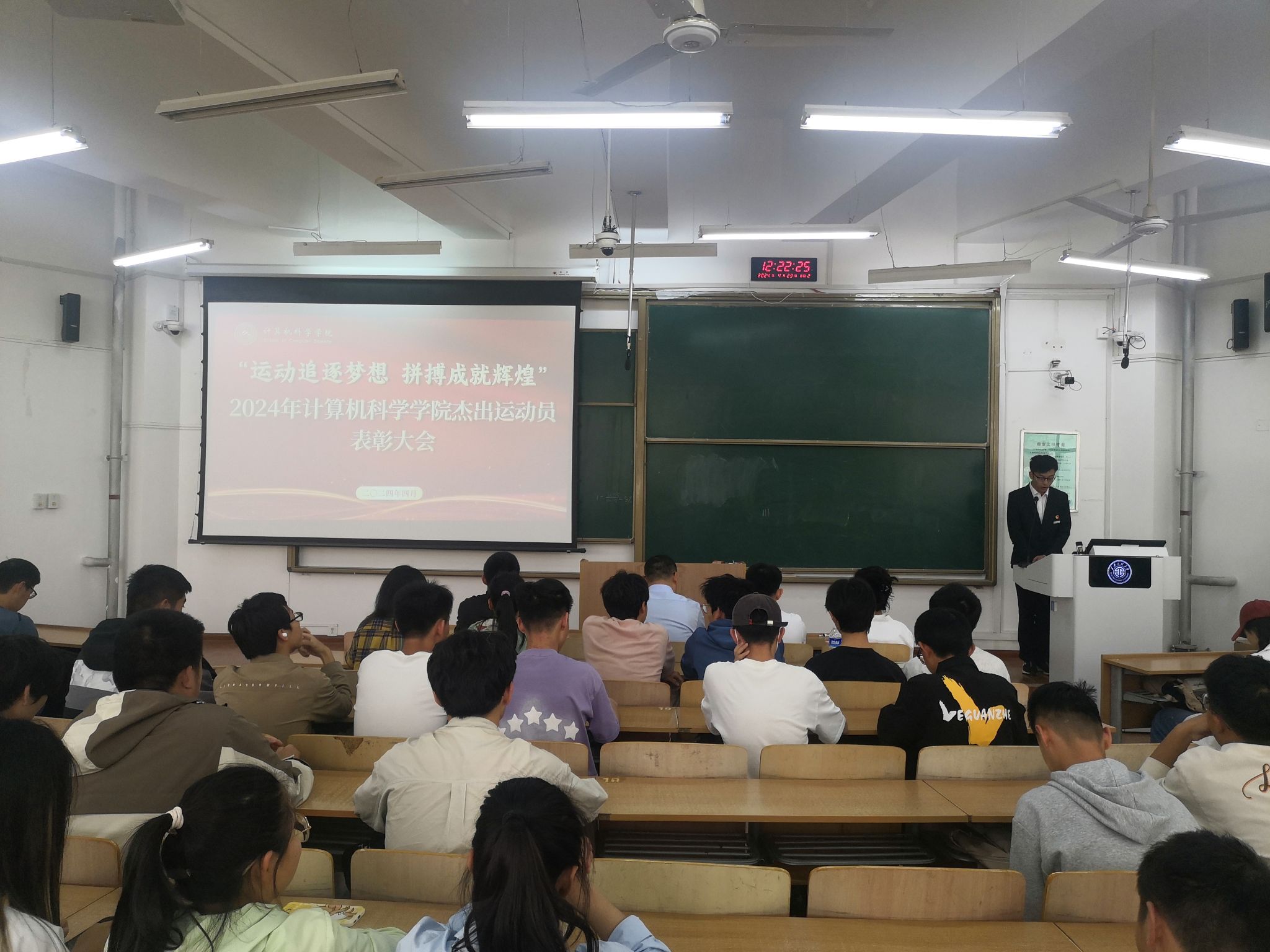 赵勇进首先进行了讲话。他代表学院充分肯定了运动员们在比赛场上的奋力拼搏的优异表现,对取得优秀成绩的运动员提出表扬,并希望大家继续努力,保持良好状态,在今后的体育比赛中为学院争光。同时,他也希望有更多的同学加入到体育锻炼的队伍中来,通过体育锻炼提升精气神,为今后的学习生活工作打下坚实的身心基础。