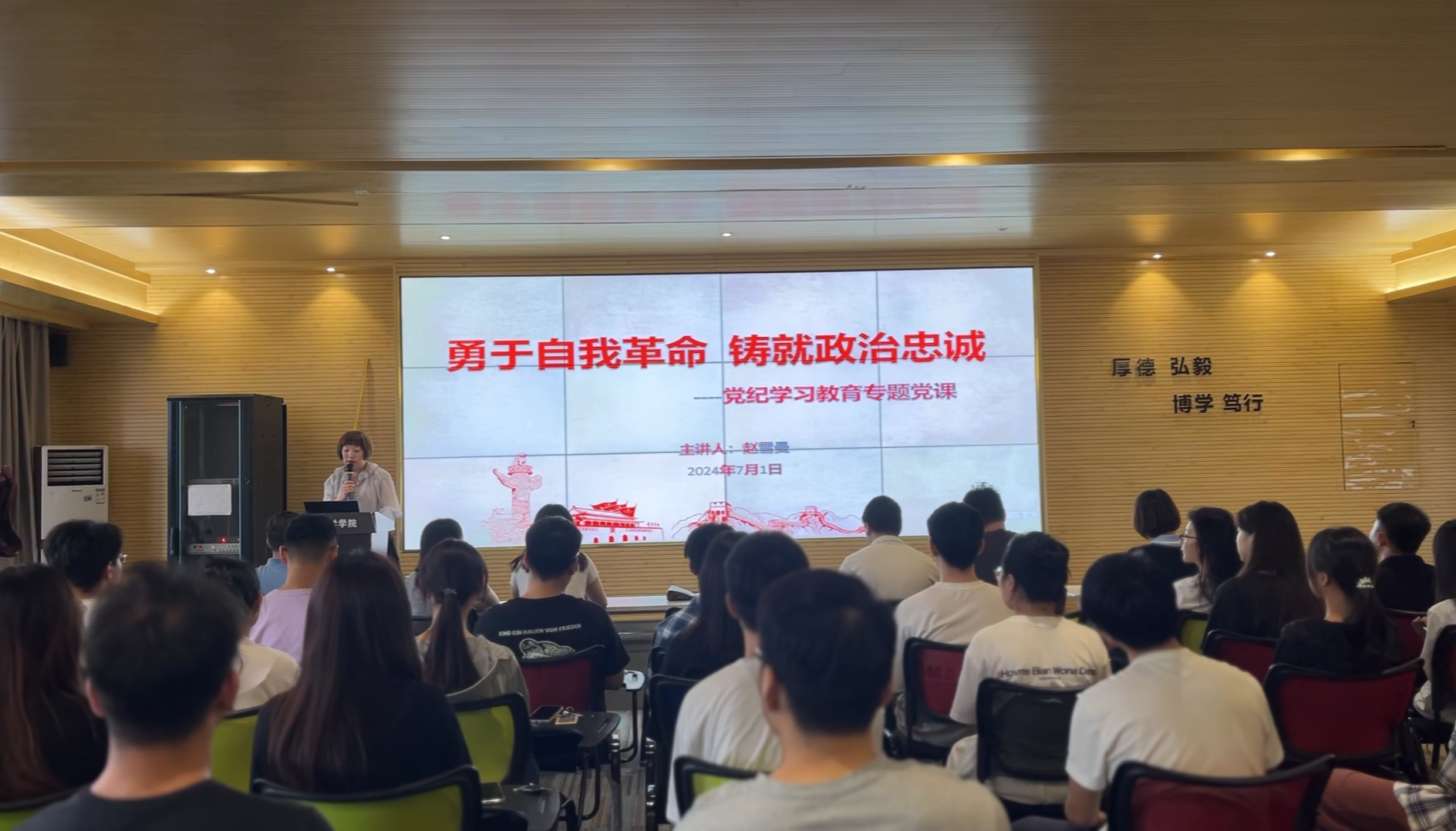 7月1日上午,beat365在线唯一官网在临潼校区笃行楼614报告厅举办党委书记讲授党纪学习教育专题党课暨党规党纪警示教育大会。学院党委书记赵雪曼、全体党支部书记、辅导员,新近发展的40名预备党员参加了大会,会议由学院党委副书记赵勇进主持。