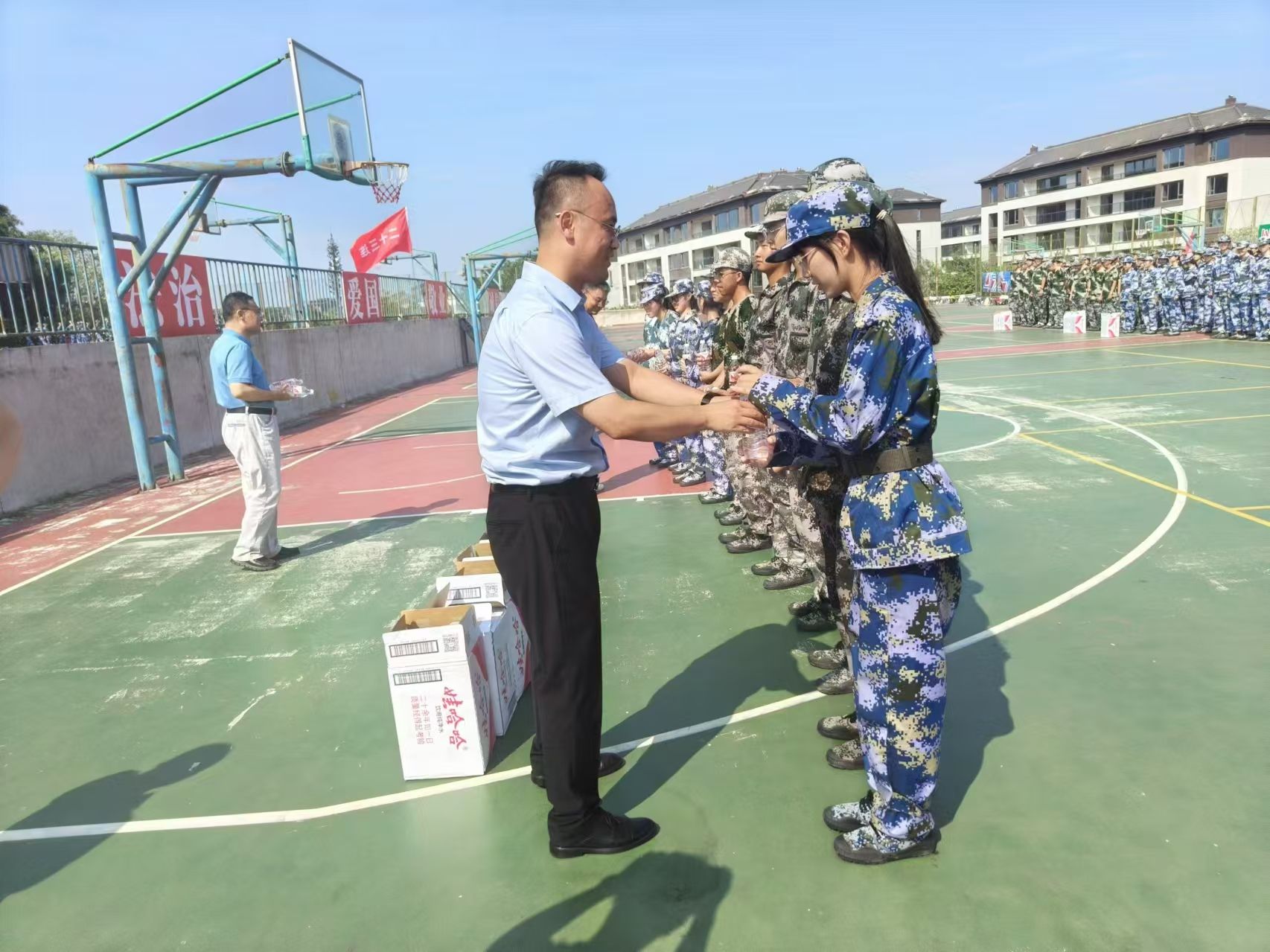 军训,是大学生活的第一堂课,它不仅是对新生体能的训练,更是对新生意志的锤炼,是新生从青涩走向成熟、从依赖走向独立的起始点。为了感谢军训教官不辞辛苦、倾情付出,鼓励2024级新生克服困难、刻苦训练、磨炼意志品质,9月3日上午,beat365在线唯一官网院长薛涛、党委副书记(主持工作)闫小兵、党委副书记赵勇进及全体辅导员走进学生社区,深入军训场地,对军训教官和全体参训本科生进行了亲切慰问。