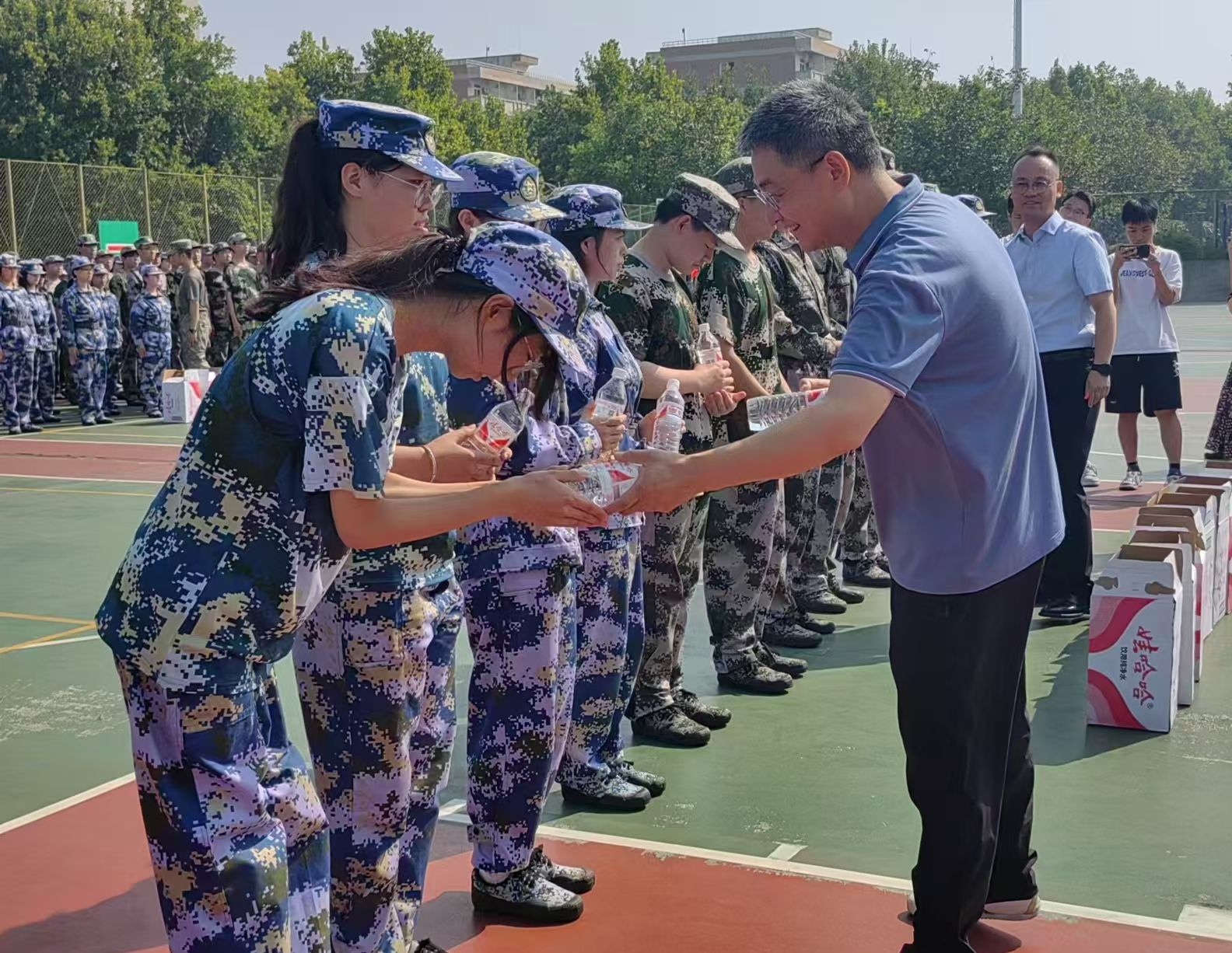 此次慰问活动让2024级全体参训学生切实感受到了学院领导老师的关怀,感受到了计算机学院大家庭的温暖,增强了对学校和学院的认同感与归属感,为接下来的军训生活提供了精神动力,必将激励同学们以饱满的热情、昂扬的斗志投入到接下来的训练和今后大学学习生活中。(撰稿:左温慧 审核:闫小兵 赵勇进)