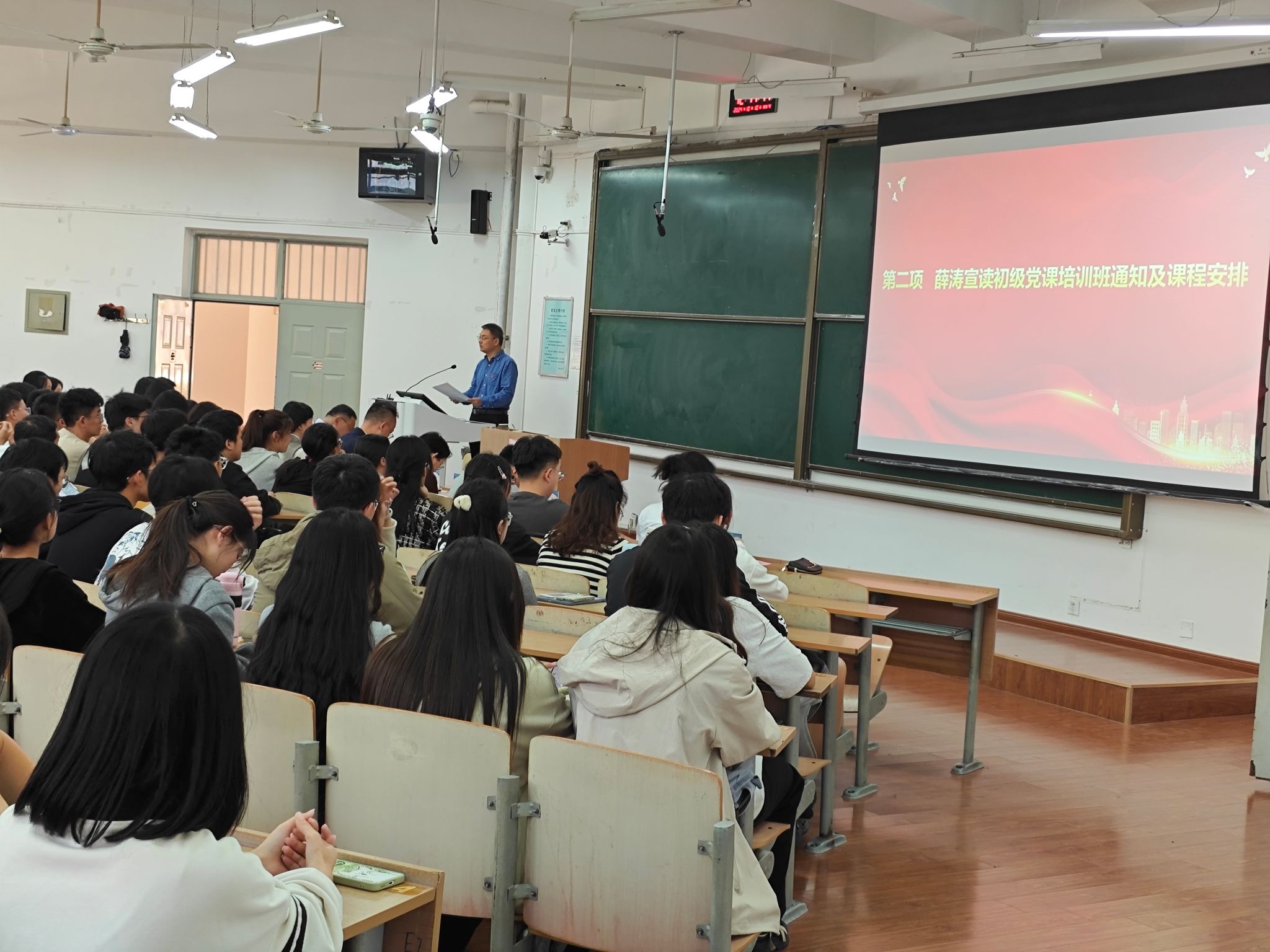 为进一步深入学习贯彻落实党的二十大精神、党的二十届三中全会精神,深化全国教育大会会议精神,加强对入党积极分子的培养教育,端正其入党动机,树立其共产主义远大理想和中国特色社会主义信念。10月10日,beat365在线唯一官网在临潼校区B137教室举办了2024年下半年初级党课培训班开班仪式。学院党委副书记(主持工作)闫小兵,党委副书记、院长薛涛、全体学生党支部书记、各支部递交入党申请书学生共计200余人参加了开班仪式,开班仪式由学院党委副书记赵勇进主持。
