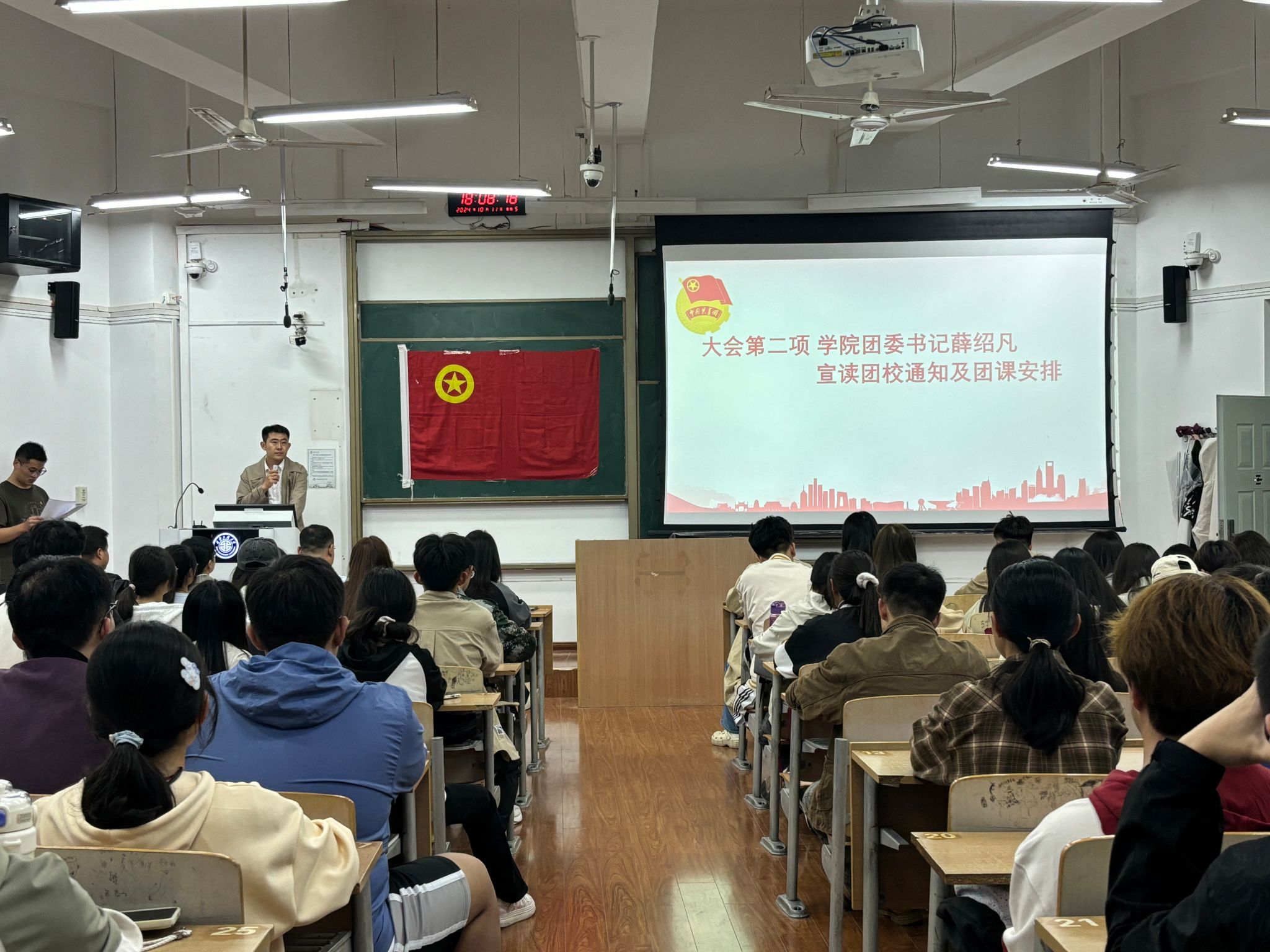 之后薛绍凡发言。他对举办本期团校的意义、培训对象、培训内容、授课形式、授课时间等做了详细说明和安排,强调了培训纪律。他指出,院级团课是促进学院青年团员加强理论学习、提升思想认识和提升综合素养的重要环节,要求学院全体青年团员要严格纪律,以严肃认真的态度上好团课。
