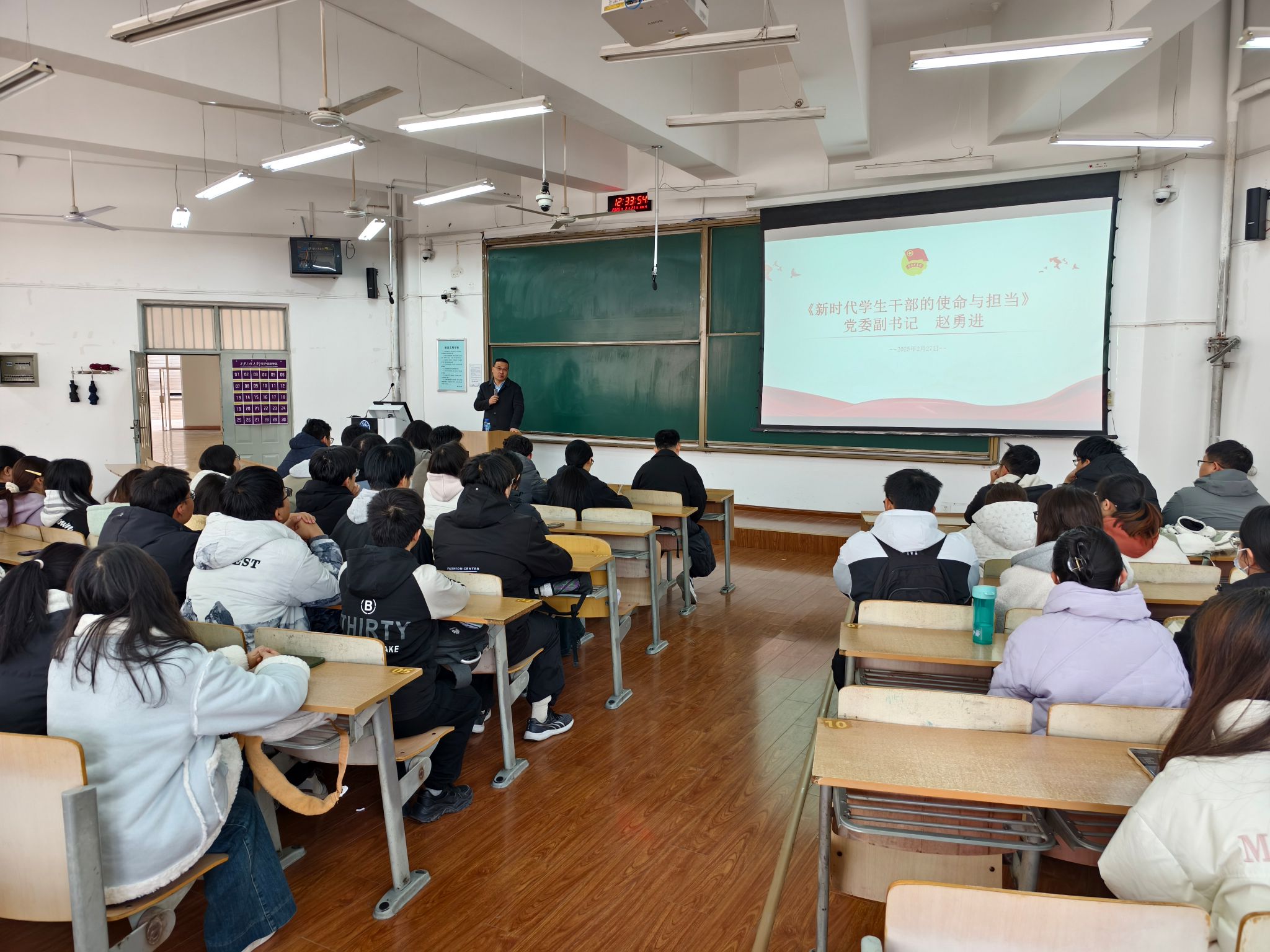 赵勇进以《新时代学生干部的使命与担当》为题作专题培训。他结合人工智能时代对人才的新要求,提出“三个坚持”:坚持用党的创新理论武装头脑,在服务大局中找准定位;坚持将专业能力转化为实践本领,在科技报国中彰显价值;坚持锤炼“严实细”工作作风,在服务同学中锻造品格。他强调,学生干部要善用大数据分析同学需求,依托学院学科优势打造智慧团建平台,以“服务力”提升“引领力”。