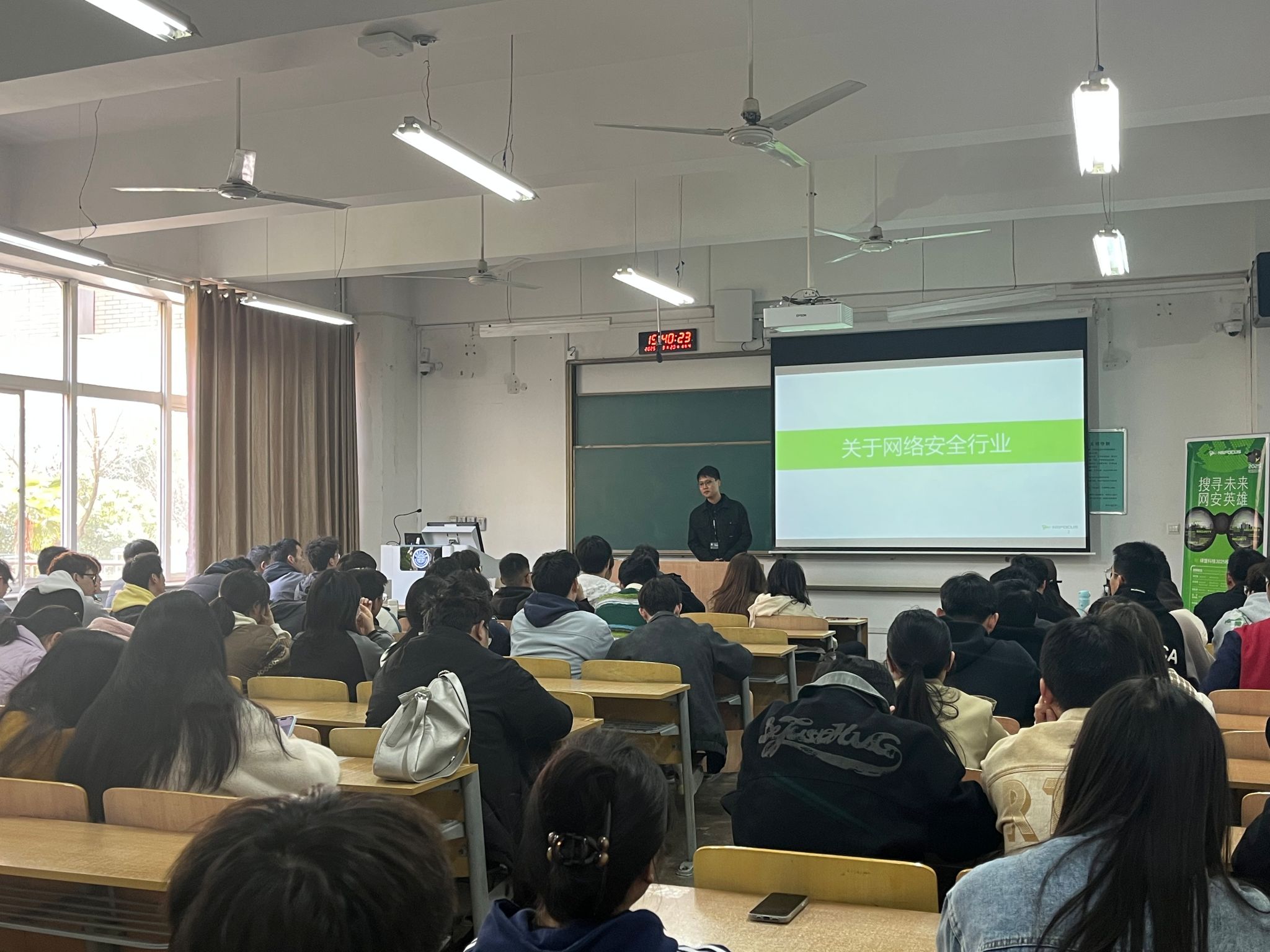 会议还特别邀请了绿盟科技集团西安分公司工程总监王超、行业售前总监孙洋洋,以网络安全行业的最新发展动态和岗位需求为主题,从行业趋势、人才培养、求职技巧等方面进行了深入解读,分享了简历制作和面试注意事项。他建议同学们在校期间多参与专业实践项目,积累实战经验,为未来的职业发展奠定坚实基础。