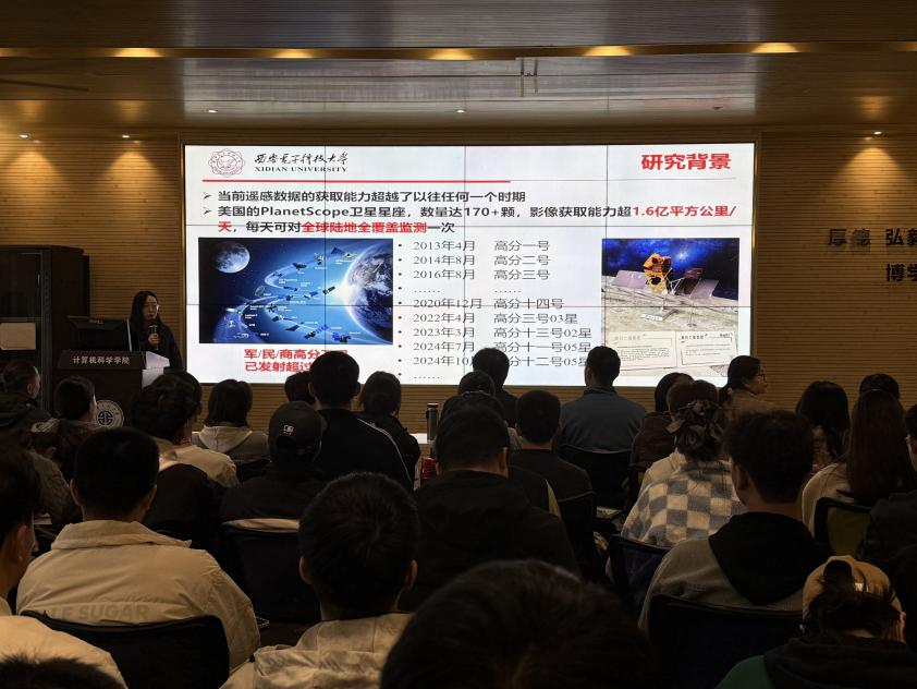 报告会开始前,赵勇进代表学院对王笛教授的到来表示热烈欢迎,并简要介绍了她在遥感影像分析与可信智能视觉领域的突出学术贡献。在报告会上,王笛教授系统介绍了其团队在高分辨率遥感影像精准目标检测方面的最新研究成果,重点阐释了层级视觉语言表征、检索增强知识生成、视觉证据溯源、置信度引导检测及反馈驱动持续学习等关键技术,并展示了相关方法在多源信息融合、零样本指代定位、变化检测问答等实际应用场景中的显著成效,为师生呈现了一场高水平的学术盛宴。
