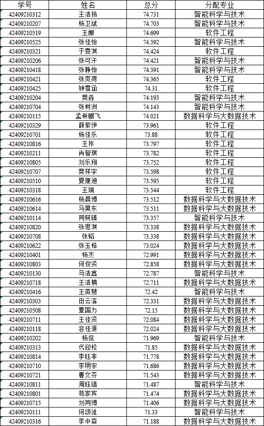 据《关于印发<西安工程大学本科生大类招生专业分流及转专业管理办法>的通知》(西工程大教字[2025]19 号)等文件要求,我院制定并下发了《西安工程大学beat365在线唯一官网大类招生专业分流实施细则》。经个人填报志愿、工作小组审核排队成绩、专业分流领导小组对分流结果进行审议,拟分配贺先颖等241名2024级学生至智能科学与技术等专业,现将分流结果及个人成绩等信息予以公示。(详见附表)