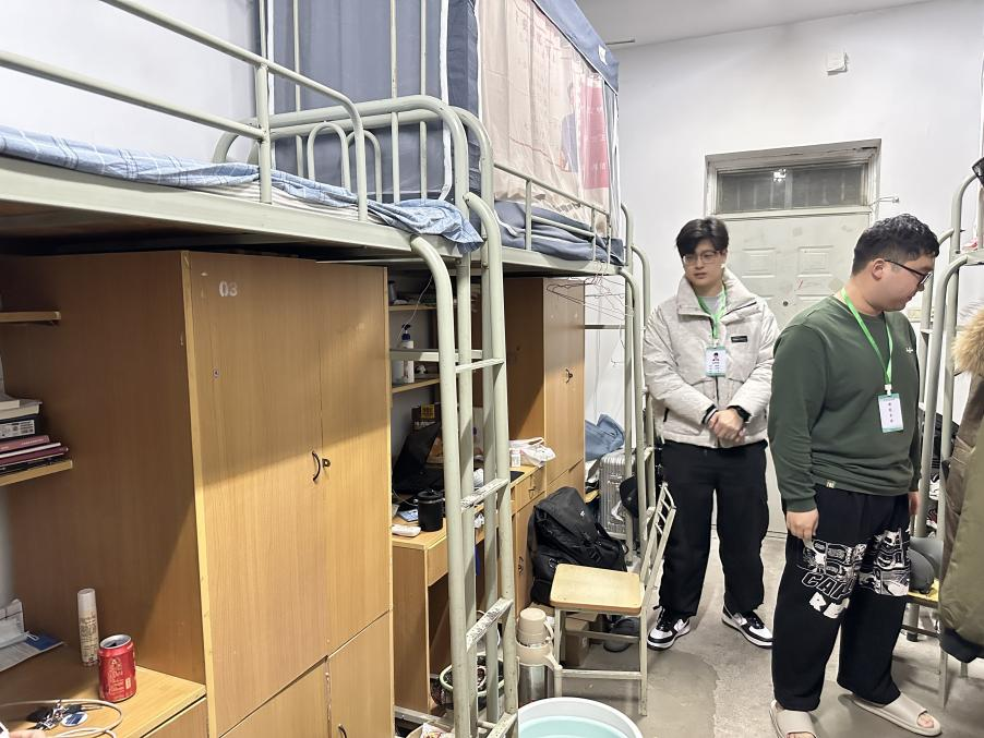 检查过程中,老师们认真巡查了本科生和研究生宿舍、辅导员工作站、党团活动室、自习室、研究室工作室等共约200间。检查重点是是否存在使用大功率违章电器或其它非安全器具,是否存在私拉乱接电线网线和饲养宠物等现象,以及室内电器、暖气、门窗、床柜等是否存在安全隐患等。
