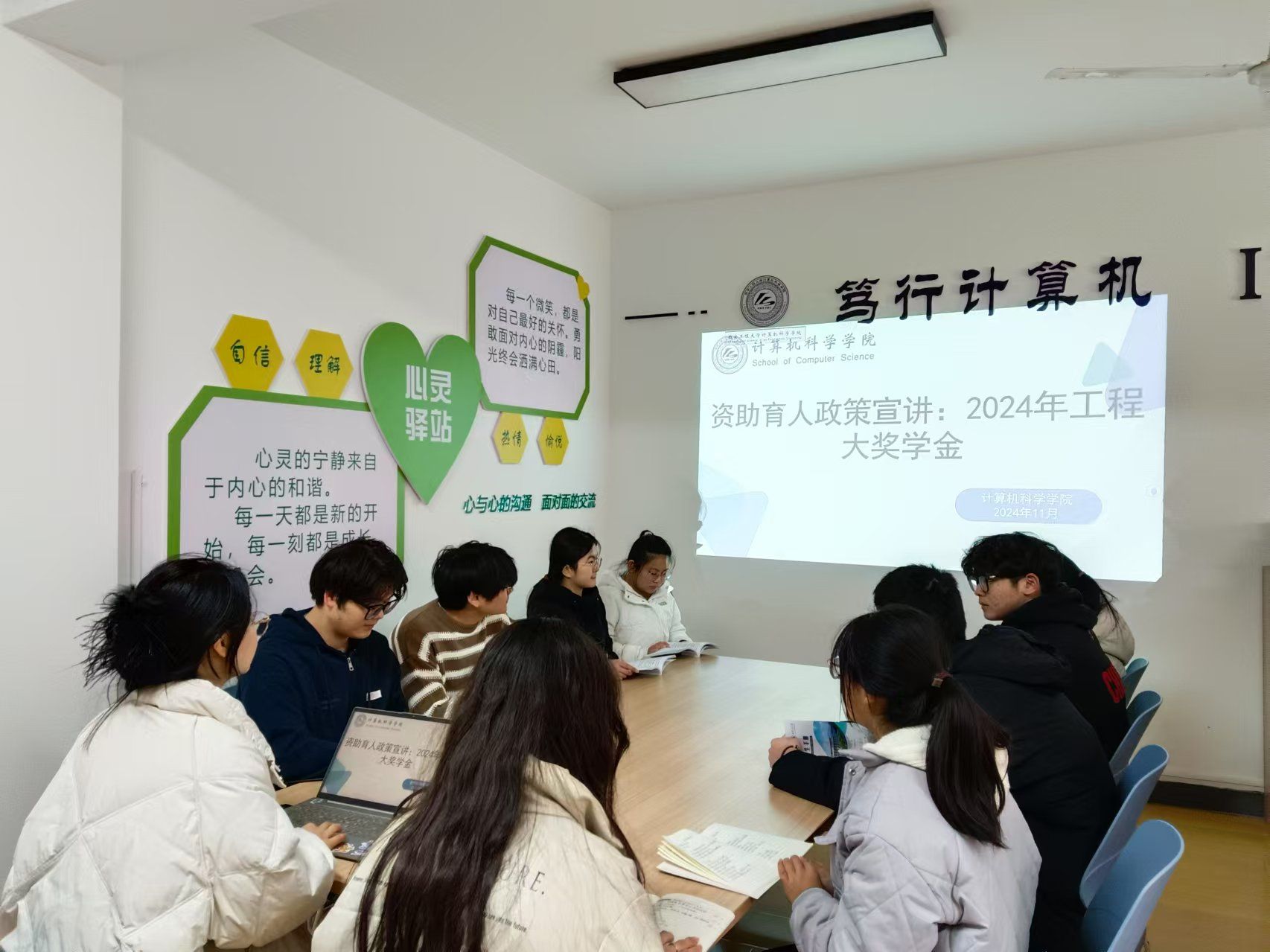 为确保工程大奖学金政策的精准传达和实施,激励学生勤奋学习、积极进取,beat365在线唯一官网于2024年11月19日举办了2024年工程大奖学金政策宣讲会。本次大会在beat365在线唯一官网“一站式”社区举行,由学院2023级兼资助辅导员曹子凡主讲,2023级各班长参与。她全面解读了2023-2024学年工程大奖学金的申请条件、资助标准及评审流程,确保学生对政策有深入的理解和正确的认识。