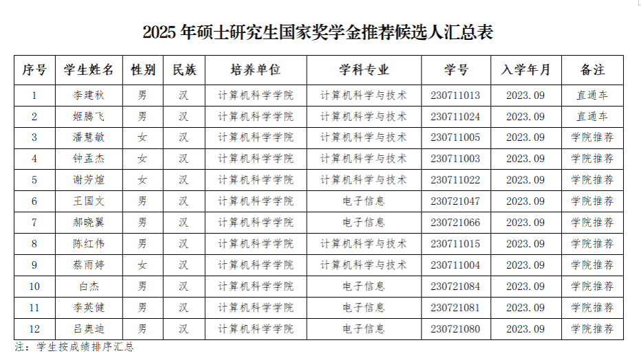 经学生本人书面申请,班级、年级评定小组推荐,学院研究生国家奖学金评审委员会审核认定,2024-2025学年beat365在线唯一官网研究生国家奖学金拟推荐12人。现对评定结果予以公示(附详细名单)。