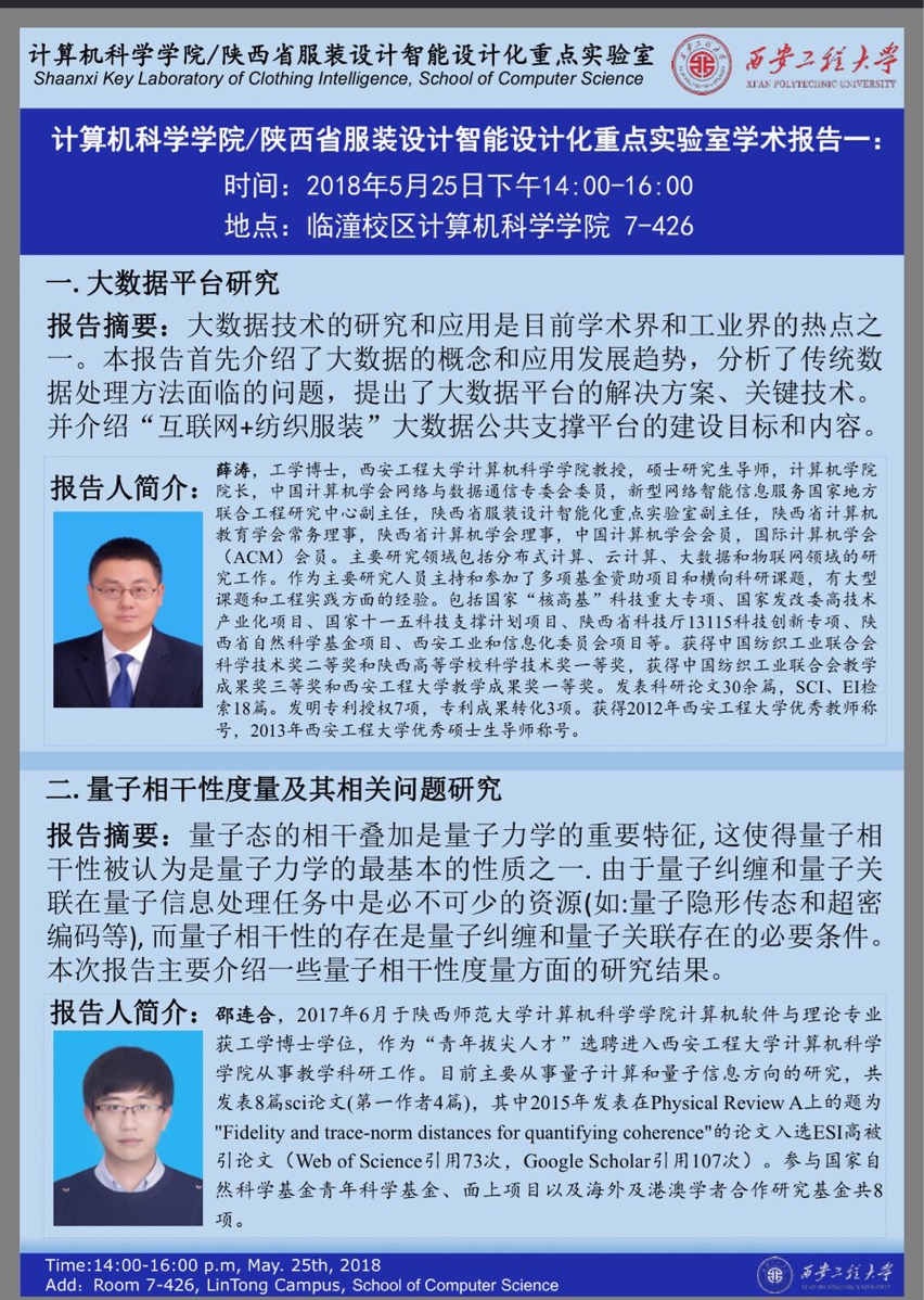 陕西省服装设计智能化重点实验室第一期学术报告通知