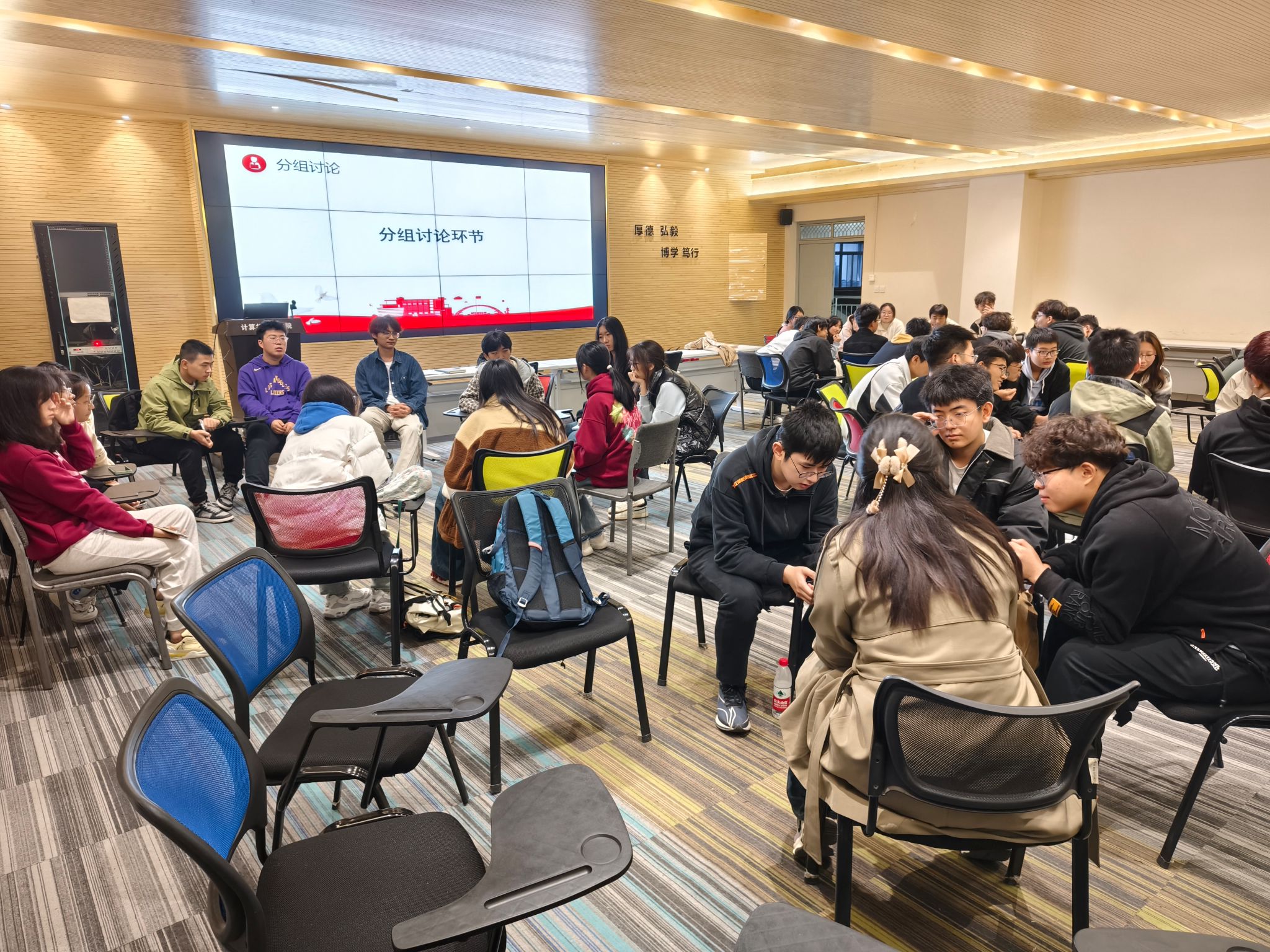 主题分享结束后,到现场的几名大四同学与在座的一年级同学进行了分组讨论,解答了大家对于课程学习、参加竞赛、社会工作、研究生推免、综合素质测评等方面的问题,会场气氛热烈。