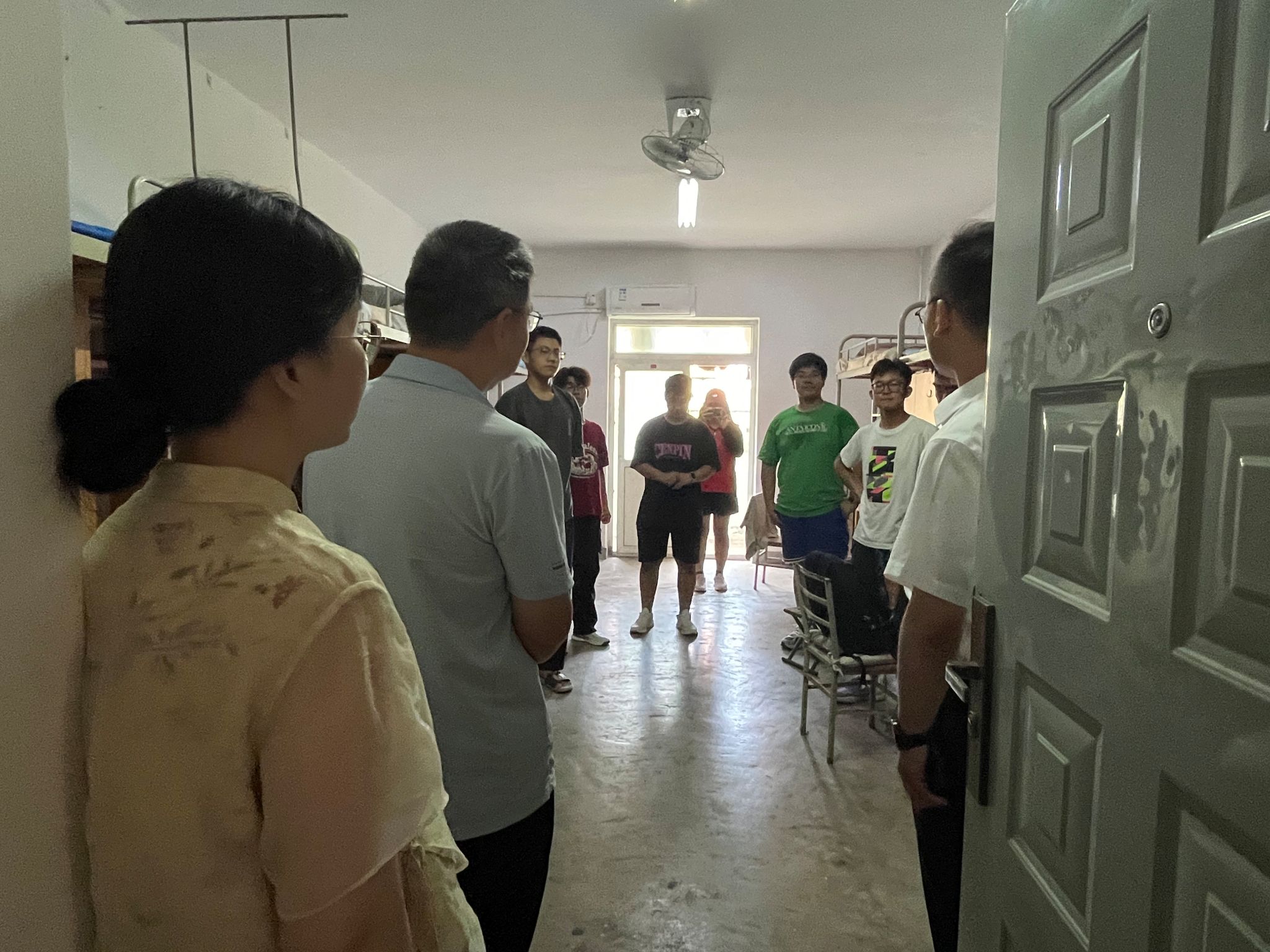 为了进一步做好新生接待工作,了解学生在校生活状况,帮助新生更快适应了大学生活、创造一个良好的校园生活环境,8月29日下午2点,beat365在线唯一官网院长薛涛、党委副书记(主持工作)闫小兵、学工办主任张苹、团委书记薛绍凡、2024级新生辅导员左温慧前往“一站式”学生社区,走进宿舍,为新生送去问候和祝福。