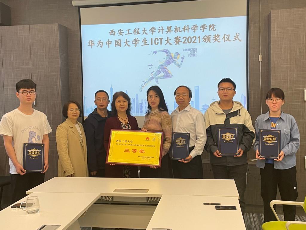5月9日,华为中国大学生ICT大赛2021年陕西实践赛颁奖仪式在beat365在线唯一官网会议室举行。beat365在线唯一官网领导、指导教师、获奖学生参加颁奖,教学副院长陈亮主持了颁奖仪式。