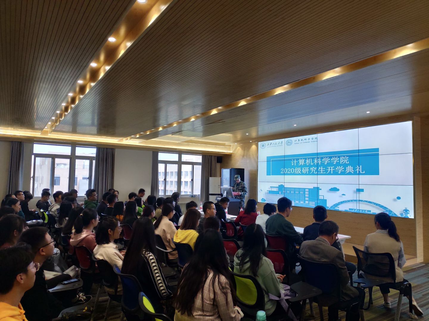 会议在雄壮的国歌声中开学典礼拉开了序幕。首先,周波向大家介绍了与会的各位领导与导师。随后,薛涛向新生介绍了学院学科建设、实验室发展和重点研发项目等情况,他鼓励新生珍惜研一的学习时间,努力创新,积极探索,在学习中锻炼自己,提升自己的就业竞争力,同时也要保证身体健康,注重劳逸结合。王雅慧对2020级新生的到来表示祝贺和欢迎,她指出研究生的主要工作是学习和科研,对于学术研究来说,最重要的是要遵循诚信教育,坚持学术创新,同时也要构建导师与学生之间良好的师生关系,她鼓励同学们学习之余积极参与各类活动,不断充实和完善自己。