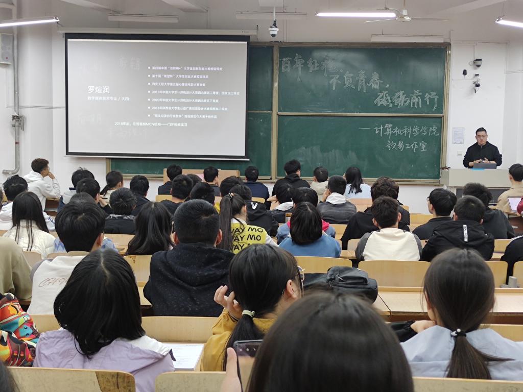 活动期间,高年级优秀学生代表依次进行了心得交流。他们从学习、生活、考研、就业等多个角度对2020级学生进行动员鼓励。其中,吴楠重点分析了各门专业课程的重要性和学习方法;罗煊润介绍了科技竞赛中的经验和乐趣;姚帅分享了就业方向、名企实习签约经历;刘景亮推荐了各种编程学习网站,并现场演示如何用程序代码来实现视频制作;李昊波重点介绍了致易青年工作室的初心、发展和成绩……大家举例丰富、重点突出,为在场的同学们指明了学习和前进的方向。