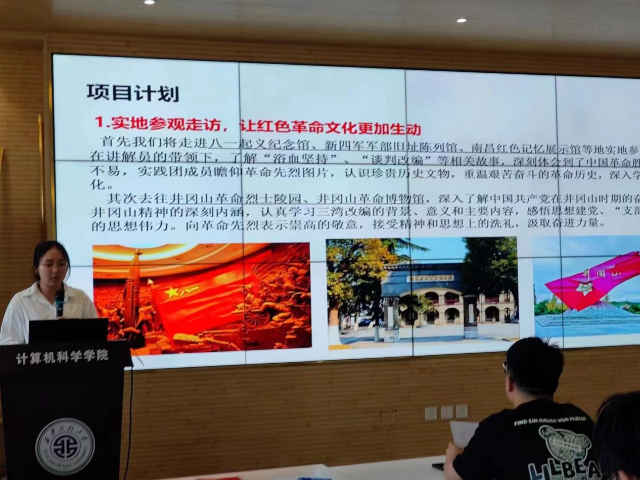 本年度暑期社会实践共有30支队伍参加答辩,经学院推荐,共推荐8支团队参加校级重点团队的立项答辩。答辩包括项目陈述和评委提问两个环节。各个团队负责人从实践的目的意义、实践内容、实践亮点、前期开展的工作,经费预算等方面进行PPT展示。