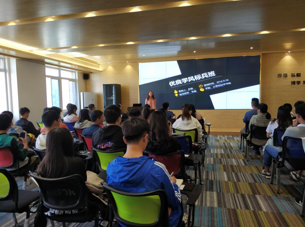 入围此次“优良学风标兵班”答辩的9个班级是从前期评定的“优良学风示范班”中产生,其中2015级有3个,2016级有2个,2017级有4个。答辩过程中,各候选班级通过PPT向大家展示了各自班级建设、学风状况、获奖情况、班级活动等。最终通过评委讨论打分,一致决定推荐2016级软件工程1班为我院2017-2018学年“优良学风标兵班”。