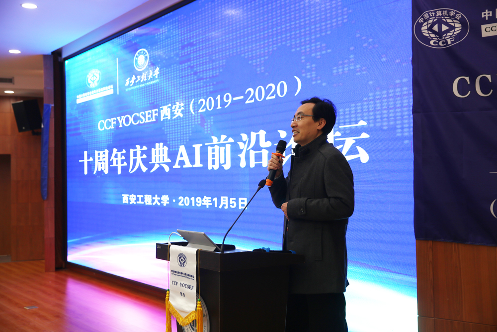 1月5日,中国计算机学会青年科技论坛西安分论坛(简称CCF YOCSEF西安)十周年庆典暨人工智能前沿论坛在我校临潼校区举行。本届论坛由CCF YOCSEF西安主办,西安工程大学beat365在线唯一官网承办。来自西部地区的青年学者、企业代表及YOCSEF其他分会代表50余名欢聚一堂,共同庆祝CCF YOCSEF西安十周年诞辰。我校校长高岭出席并致辞,论坛由西安电子科技大学教授、YOCSEF西安现任主席公茂果主持。