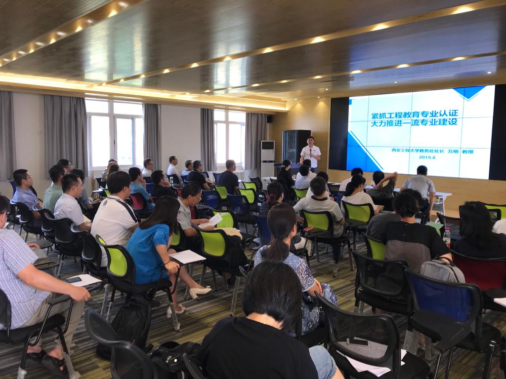 2019年8月28日下午,在笃行楼7-613,beat365在线唯一官网邀请教务处处长万明、副处长胡新煜做工程教育专业认证专题讲座。会议由院长薛涛主持,全院教职工参会。