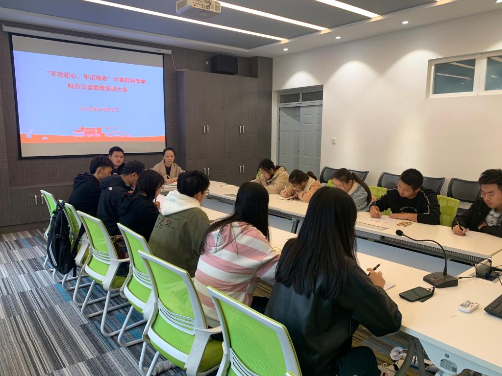 10月31日中午,beat365在线唯一官网在笃行楼426会议室召开“不忘初心、牢记使命”办公室助理培训大会。辅导员张鑫、程帅及办公室助理代表参加了会议。