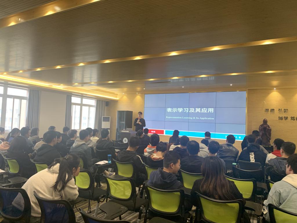 此次报告中,路文针对科技论文写作及科研方法做了详细讲解。他指出高水平的论文不仅要有科学的分析论证,独到的学术见解,而且要做到结构严谨、语句通顺、用词准确,有较高的可读性,才能被相应的期刊杂志所接受。同时,针对如何做科学研究、如何总结工作成果、如何撰写科技论文等相关内容,分享了自己的科研工作经验。杨博主要介绍表示学习的基本概念,流行学习与稀疏表示的基本思想,以及表示学习在图像快速检索与生物组学数据挖掘中的应用。整场报告会,讲解内容深入浅出、引人入胜。在提问环节,与会师生踊跃提问,两位专家对大家的问题做了详细解答。