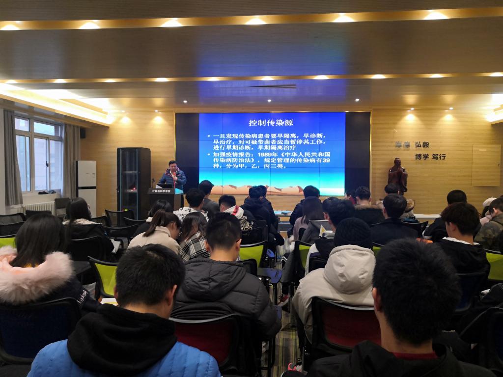 冬季是传染病高发的季节,为提高学生防范疾病意识和自我保健能力。近日,beat365在线唯一官网联合校医院举办了传染病预防知识讲座,重点对水痘、诺如病毒以及艾滋病等进行防控教育。计算机学院全体辅导员、学生干部参加了本次讲座。校医院杨军宏大夫为主讲人。