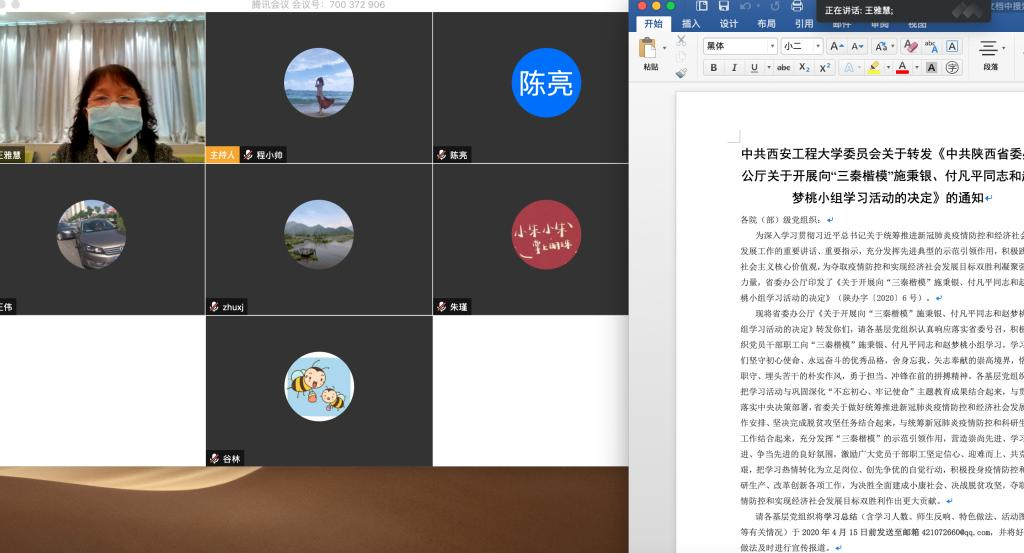 4月13日下午,beat365在线唯一官网召开党委理论学习中心组学习会,认真学习施秉银等“三秦楷模”和全省优秀共产党员的先进事迹并开展讨论交流。会议采取线上线下相结合的方式进行,会议由院党委书记王雅慧主持。