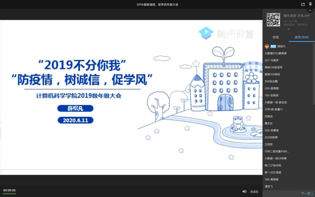 2020年6月11日晚8点,beat365在线唯一官网2019级学生通过腾讯课堂召开了线上年级大会。beat365在线唯一官网党委副书记周波、办公室主任朱瑾、团总支书记朱成功、2019级辅导员薛绍凡及beat365在线唯一官网2019级全体同学参加,会议由薛绍凡主持。