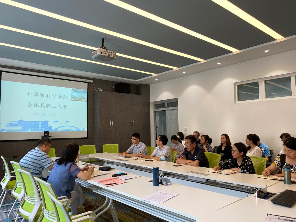 首先,薛涛对学院2020年上半年工作进行了总结。他向大家通报了学院上半年学科建设、师资队伍建设、专业建设、教学科研、研究生及就业等方面所做的工作及取得的成绩。截止目前,学院整体情况较好,上半年科研获批多项纵项项目、到款情况较好;“软件工程专业”获批校级一流专业,新申报的“网络空间安全”新专业获批,并将开始招生;下半年将完成学院“十四五”规划的制定、省级重点实验室的验收等工作,大力推进计算机科学与技术专业工程认证,同时,他督促教师及早对照2018-2020年度考核任务做好考核准备。