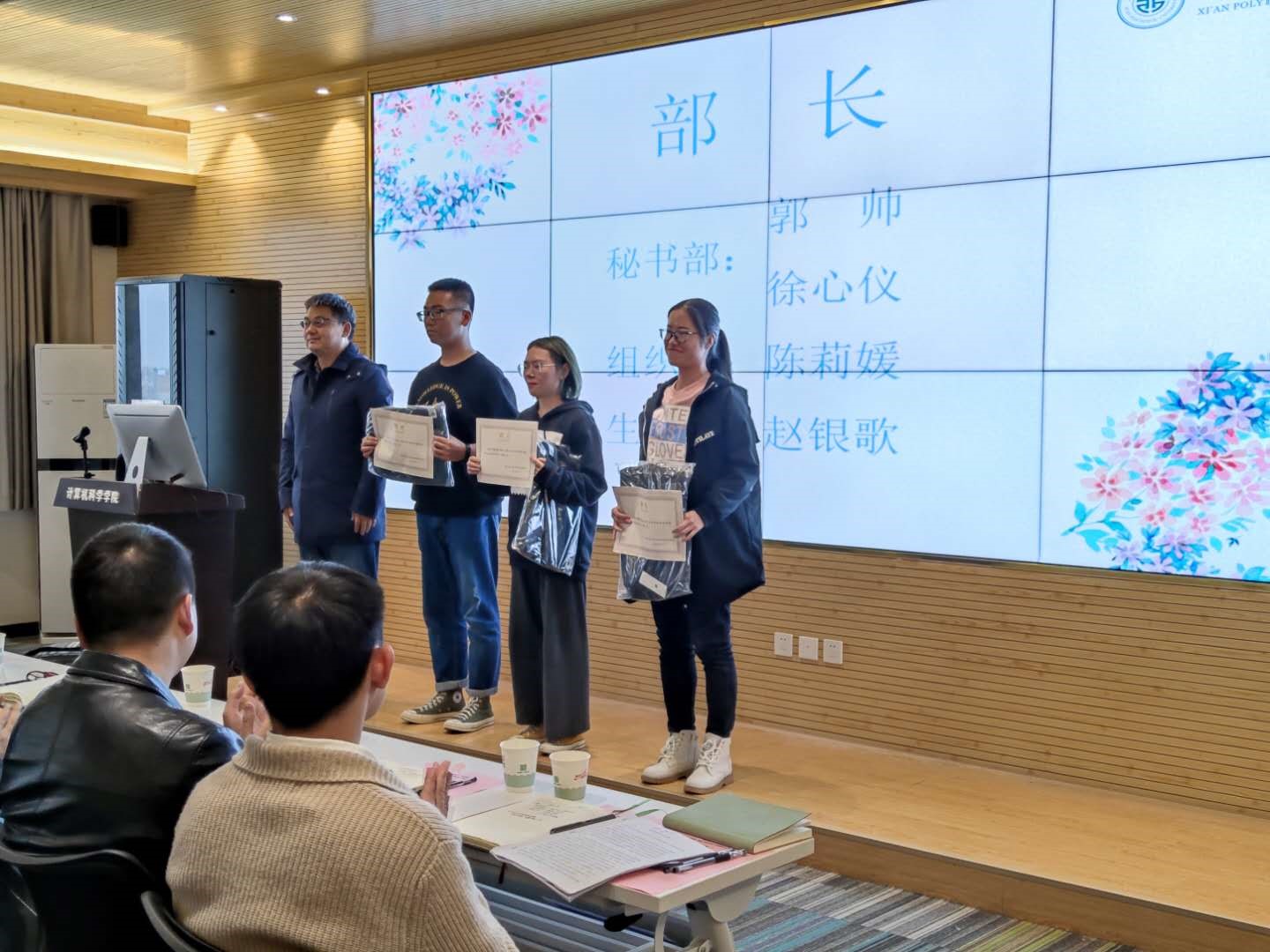 随后,副院长陈金广对新一届受聘的研会成员表示祝贺,希望所有成员时刻秉持服务好、带领好的工作原则继续服务于老师和同学。党委书记王雅慧对本届研会干部和同学们提出一些要求:一是要求研究生会干部认真履行职责、发挥好桥梁枢纽作用、树立服务意识、完成本职工作,同学们也要积极配合研会工作的开展;二是要求同学们提高安全防范意识,注重人身、财产与交通安全,不听信、不参与网贷,出现问题及时与老师、同学沟通,注重身心健康发展,共同创建平安校园。