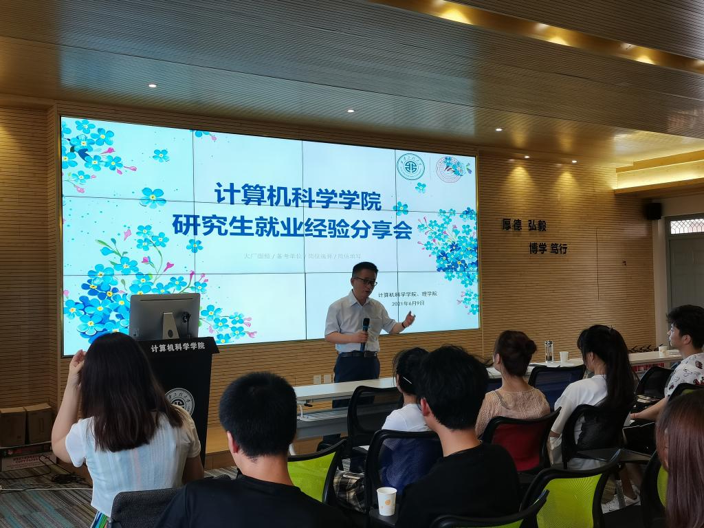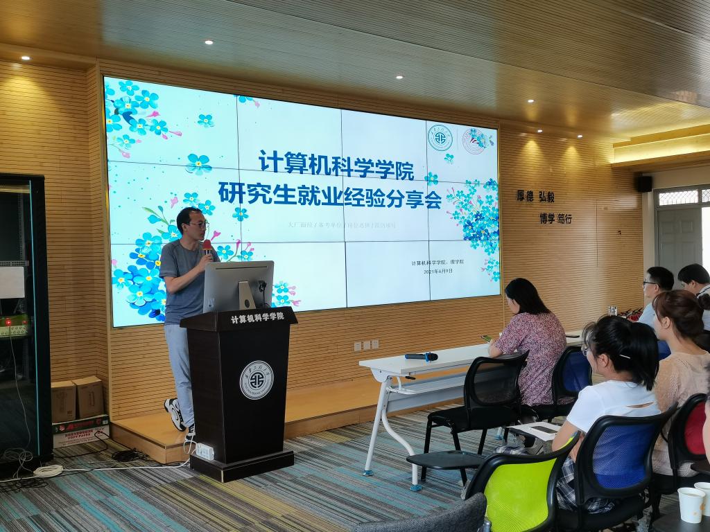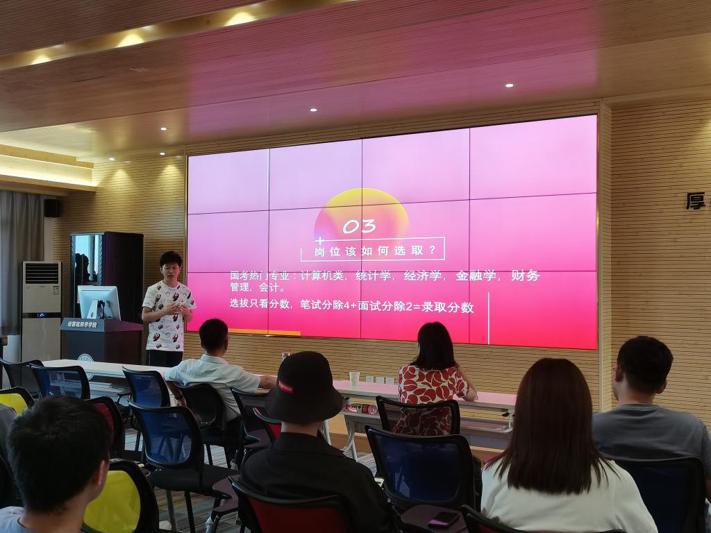 接着,4名签约互联网企业、事业单位的毕业班同学依次上台做了自己的经验分享。17级本科生淡瑞从自己的前期准备到简历填写、面试过程都进行了详细的报告,让大家对秋季招聘有了一个全面的了解。18级研究生胡程鹏向大家分享了计算机专业在求职前所需要的技术储备和学习方法,从基础知识框架到相关学习书籍的选择都进行了详细介绍。紧接着18级研究生赵普凡与大家分享了自己从技术岗位实习到改变方向考取高校辅导员的历程和准备过程。最后理学院18级研究生曹皓铭同学与大家分享了国家公务员考试的相关内容,并根据自己的实际经历为大家推荐了合适的复习资源。