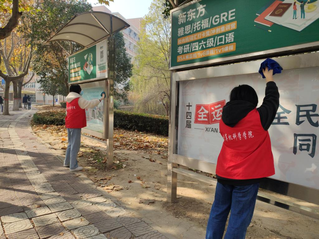 为更好发挥宣传栏的宣传效果,为师生在观看时创造温馨舒适的视觉体验。11月19日中午,beat365在线唯一官网本科生数媒智科党支部组织全体党员对校园内的车站宣传栏、指示路牌、环道宣传栏以及中心广场内的宣传栏进行了一次集中清理,以展示良好的环境面貌。
