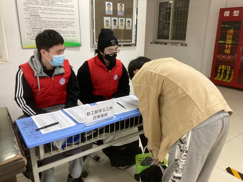 12月27日,西安市疫情防控指挥部发布通告称自12月28日0时起,实行最严格的社会面管控措施;学校疫情防控工作领导小组也要求“校院两级学工系统全员在岗、学生非必要不离开宿舍”。学院党政主要负责人、全体辅导员闻令而动,克服重重困难,纷纷赶在28日0时前赶回临潼校区,投身最严格的校区封闭、宿舍限制管理工作中,当天晚上迅速召开主题班会做好学生的思想稳定工作,将出入凭证发放到近400间宿舍,打好疫情防控升级的准备战。