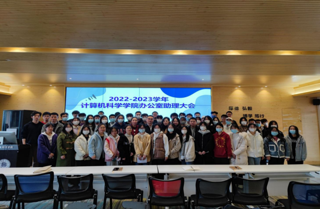 叠翠流金,层林尽染。时入深秋,2022年办公室助理招新工作也落下帷幕,办公室大家庭又注入了一批新鲜血液。11月15日中午,计算机学院在笃行楼613报告厅线下召开办公室助理大会。院党委副书记赵勇进、全体辅导员和办公室助理参加了会议。