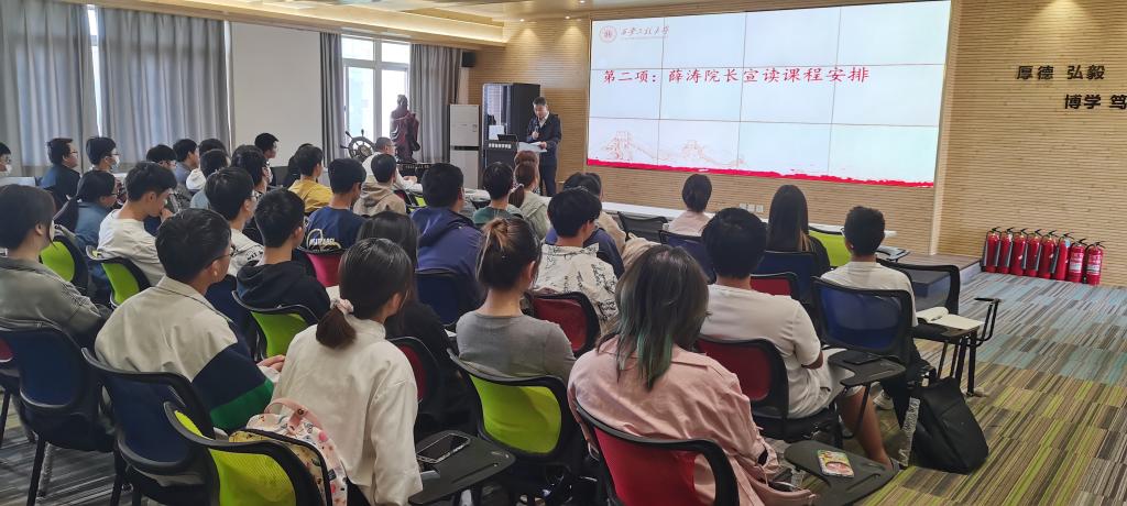 薛涛院长介绍了本次初级党课课程安排,内容涵盖了党的性质和指导思想、党的宗旨和党员的权利与义务、党员的标准、党的组织原则和组织纪律等方面。随后,学院党委书记赵雪曼以《坚持和发展中国特色社会主义是当代中国发展进步的根本方向》为题,给与会人员开始进行第一讲。