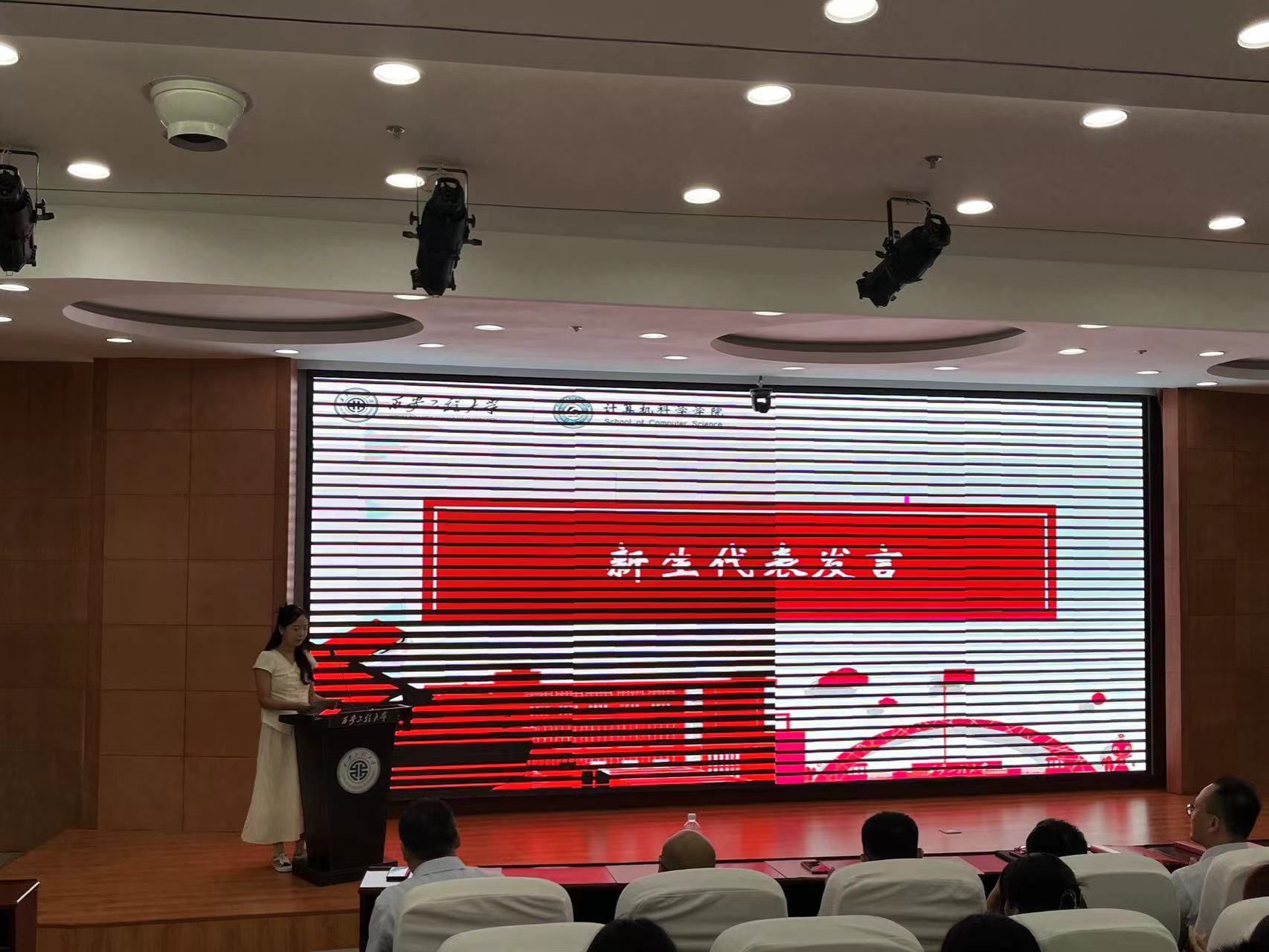 在学生代表发言环节,老师代表潘慧敏激励同学们对自己高标准,严要求,要对自己的潜能和实力充满信心,坚信不懈的努力终将获得丰硕的成果。新生代表高钰冰表示前提新生要携手共进,踔厉奋发,追求卓越,为个人的前途、学院的发展、学校的未来和国家的进步添砖加瓦。