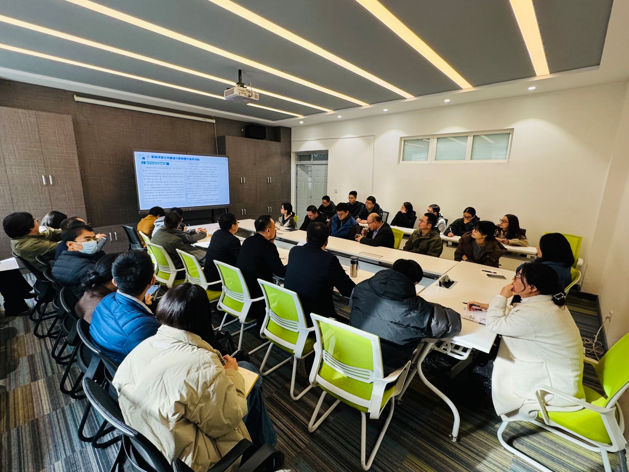 张凯兵在会上详细解读了职称评审政策,并就职称晋升条件进行了说明。他还分享了中青年博士人才队伍建设的成绩,以及2024年度考核办法的具体落实情况。对于引进人才入校任务的完成情况,他也做了总结汇报。张凯兵深入分析了当前学院在人才建设方面面临的机遇与挑战,鼓励青年教师将个人职业规划与学院发展目标紧密结合,明确自身定位和发展路径,以更好地服务于学科建设和专业发展。