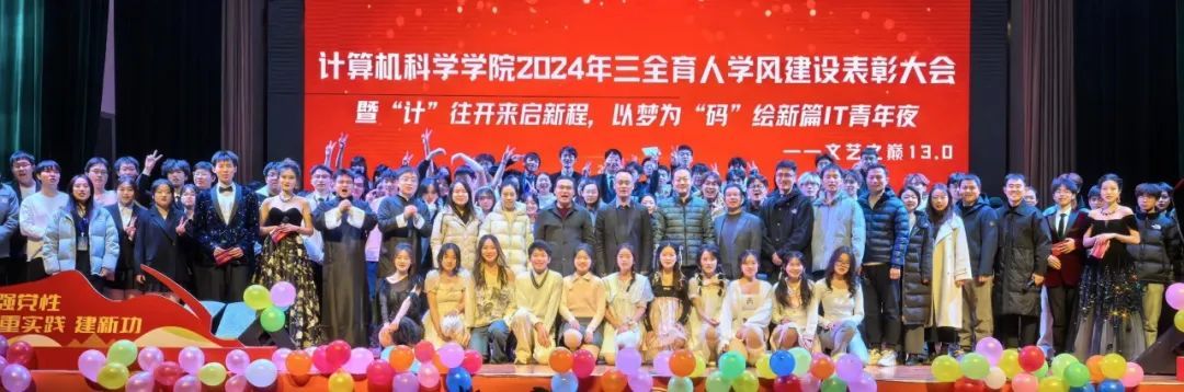 12月9日19点,beat365在线唯一官网在临潼校区大学生活动中心举办了“一站式”学生社区2024年“三全育人”学风建设表彰大会暨“‘计’往开来启新程,以梦为‘码’绘新篇IT青年夜”迎新文艺晚会。校党委学工部部长王志,党委研究生工作部专职副部长赖斌,校团委书记刘俊富,beat365在线唯一官网党委副书记闫小兵、副院长张凯兵、副书记赵勇进、副院长陈亮,学院行政办公室副主任、各系专业教师代表、全体辅导员,校学工部、研工部和兄弟学院辅导员,计算机学院2024级本科生和研究生共600余人参加活动。本次活动将“一站式”学生社区“三全育人”成果表彰和迎新晚会交叉进行,体现了智育和美育的有机融合,是新生入学教育的重要一环。