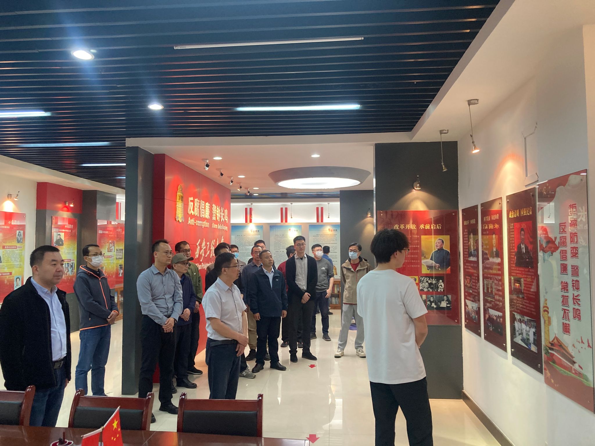 随后,老师们有序步入廉政教育基地进行了参观学习,映入眼帘的“反腐倡廉,警钟长鸣”几个大字让人不禁肃穆。在讲解员生动的讲解下,老师们依次参观学习了党和国家领导人反腐倡廉寄语、多媒体演示区、反腐倡廉历程、实物展示区、党规党纪教育、模范教育及警示教育等六大板块内容。大家借助珍贵的历史文献、详实的图片资料以及具有代表性的实物展品,深入了解了我国源远流长的廉政传统和文化脉络。在警示教育板块前,学院党委副书记闫小兵结合近年来教育系统违反中央八项规定精神的典型案件,以案剖析,以案为鉴,提醒学院教职工要时刻加强自身作风建设,筑牢拒腐防变的思想防线,严守党纪国法的底线红线,强化政治理论学习,踏实务实干事,积极为学院发展做出贡献。