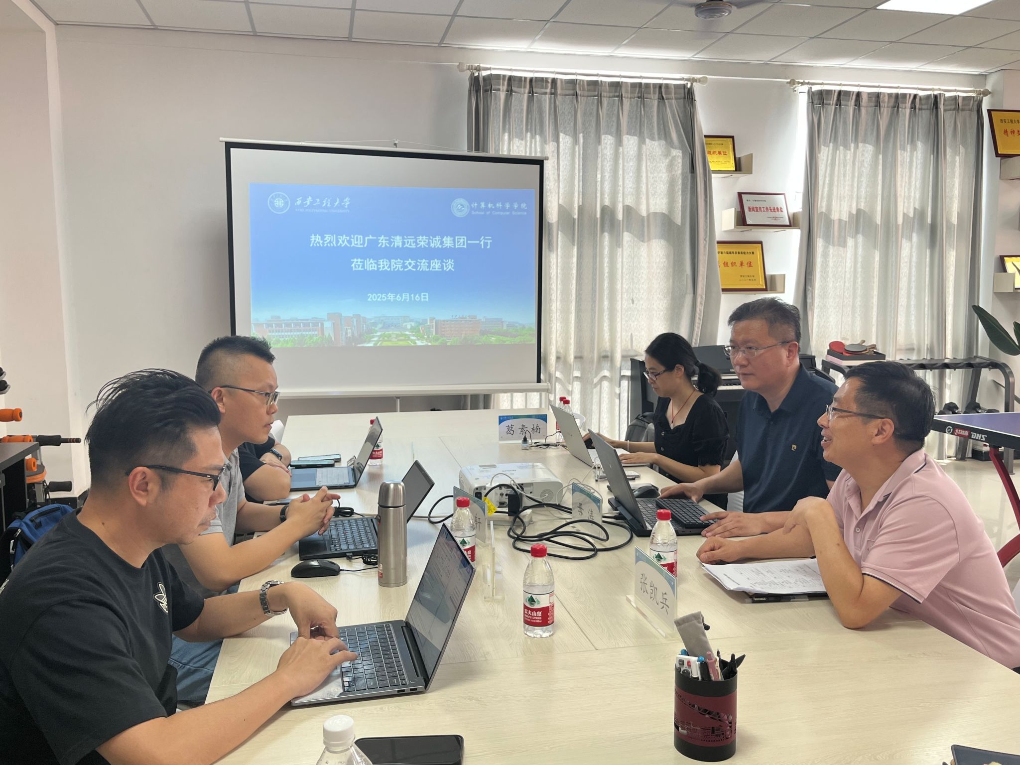 6月16日,广东清远荣诚集团人力资源总监翁士伟、开发中心执协柯智轩、系统部协理黄凌峯一行3人莅临beat365在线唯一官网,围绕"数字产业人才共育"主题开展专项调研和人才招聘。学院软件工程系毋涛副教授、智能科学与技术系葛素楠博士参加调研座谈会,座谈会由学院副院长张凯兵教授主持。