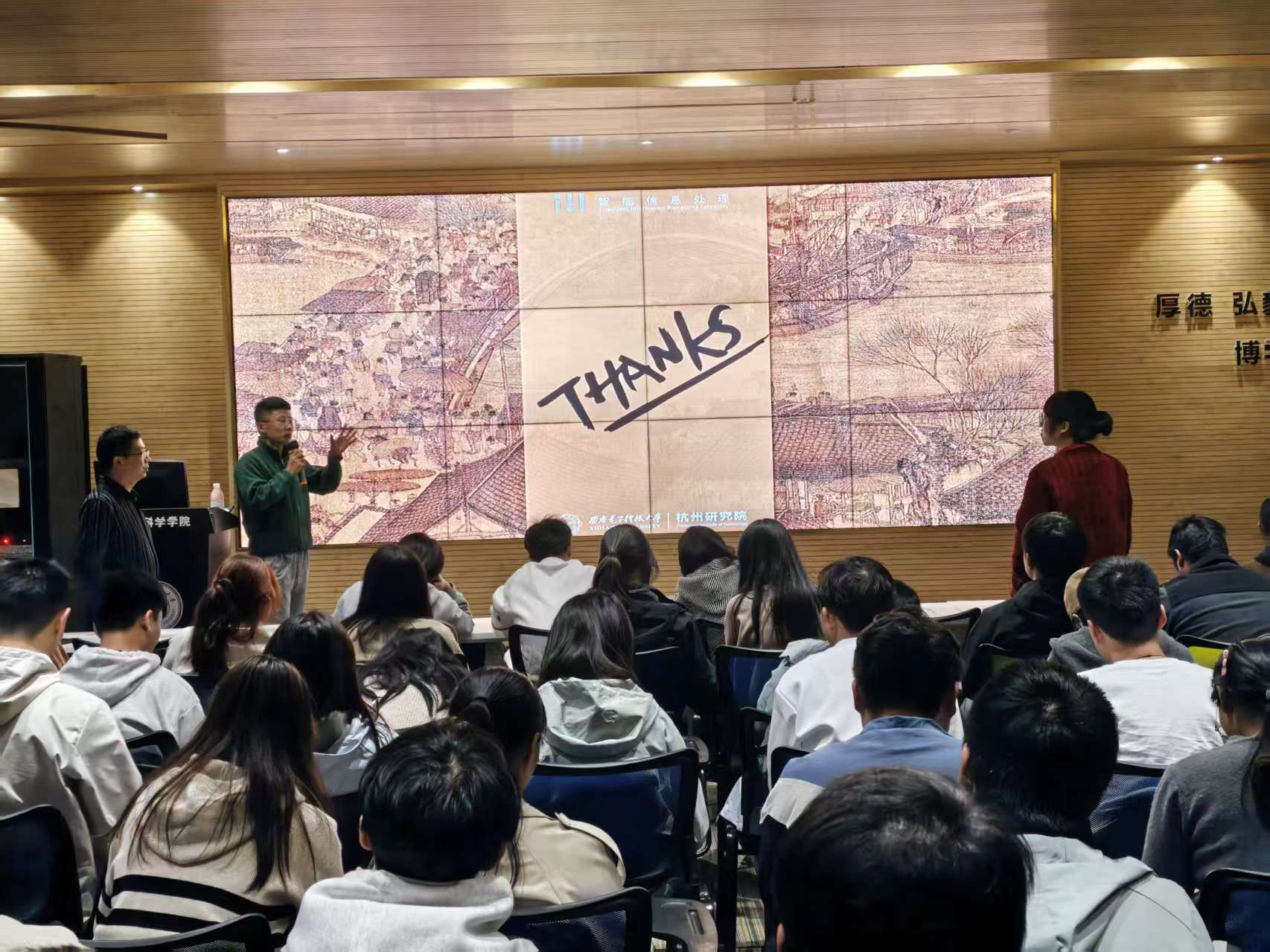 在交流环节,师生们结合自身研究与学习中的问题积极提问,讨论内容聚焦于“AIGC多模态模型的优化方向”、“跨域生成中如何保障图像可信度”和“人脸卡通化的身份信息保留技巧”等热点问题。高飞博士针对每个问题,结合行业典型案例与团队科研经验逐一解答,既指出了当前大模型在“风格一致性”和“生成稳定性”等方面的不足,也分享了科研团队在相关技术改进与落地应用中的实践经验。通过深入的互动交流,使师生们对AIGC技术发展的难点与创新路径有了更清晰的认识。