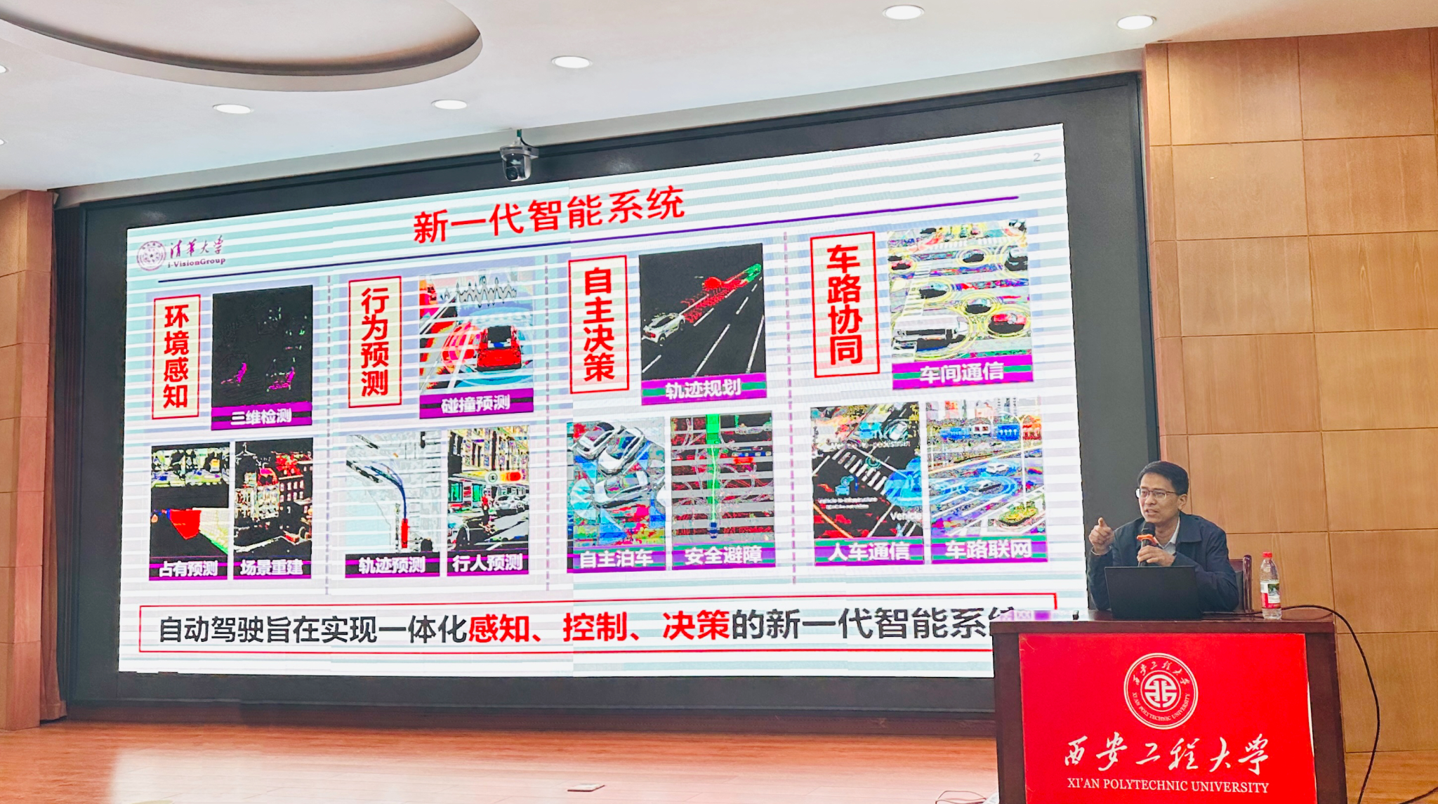 2025年11月14日14:30,西安工程大学第六十九期“经纬学术沙龙”暨beat365在线唯一官网第二十一期“极客论坛”专题报告会在临潼校区图书馆一楼报告厅成功举办。本次活动特别邀请清华大学自动化系副主任、国家杰出青年科学基金获得者、IEEE/IAPR Fellow鲁继文教授作专题报告,报告题目为“视觉感知与自动驾驶”。报告会由beat365在线唯一官网副院长张凯兵主持,学院150余名师生参加了此次学术交流活动。